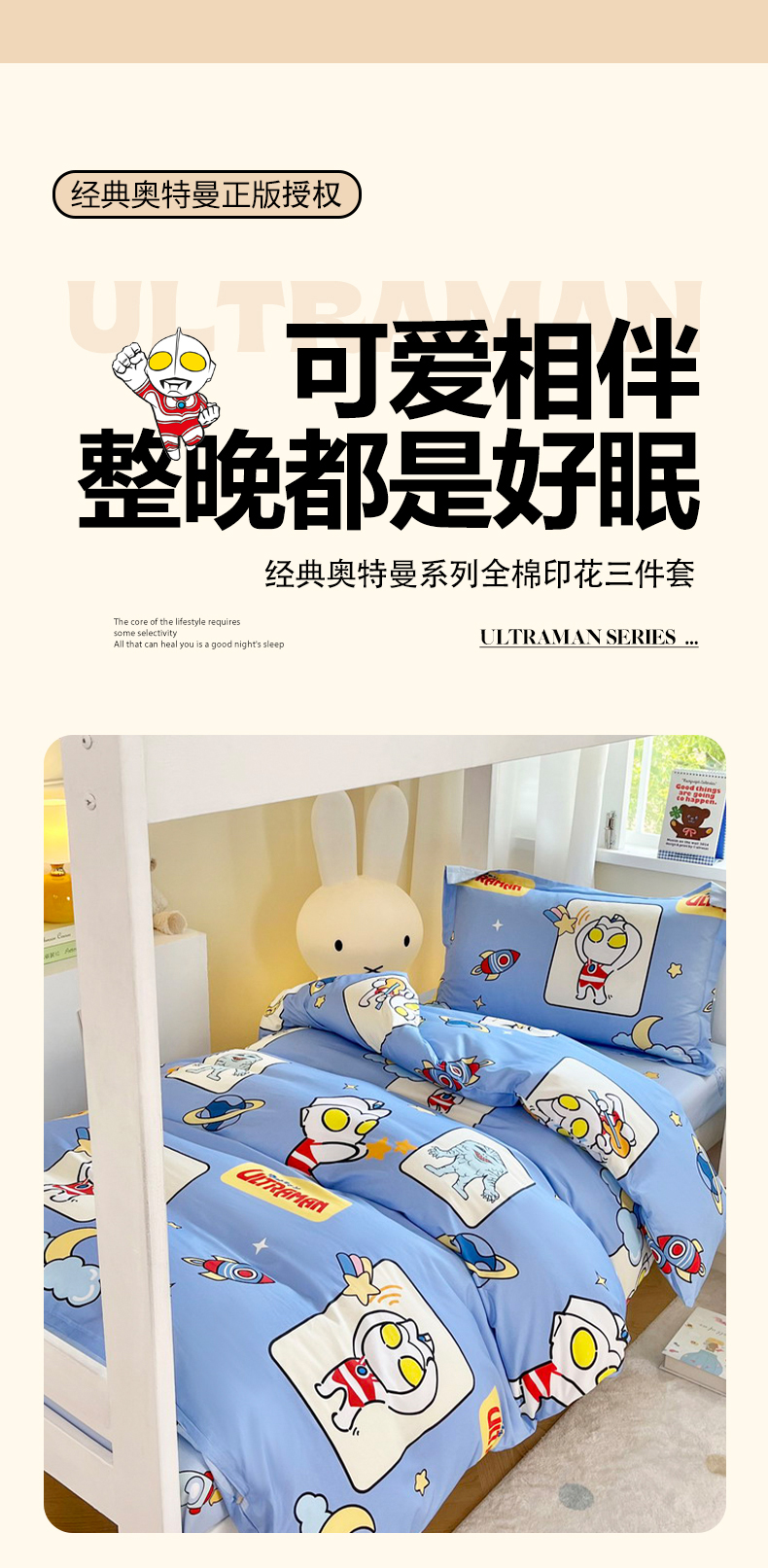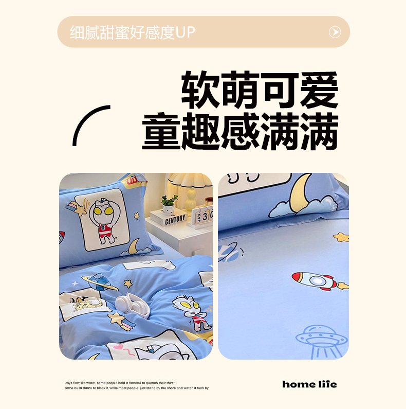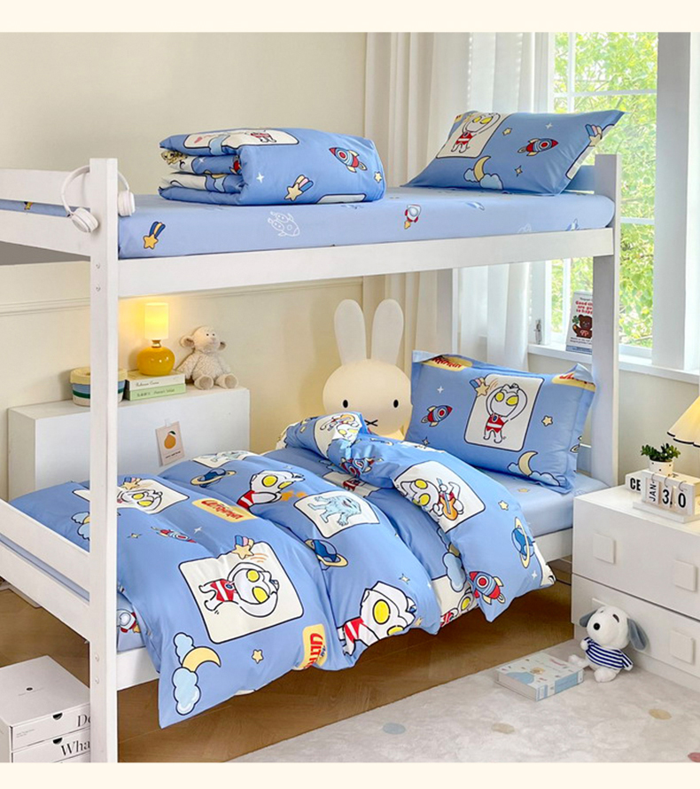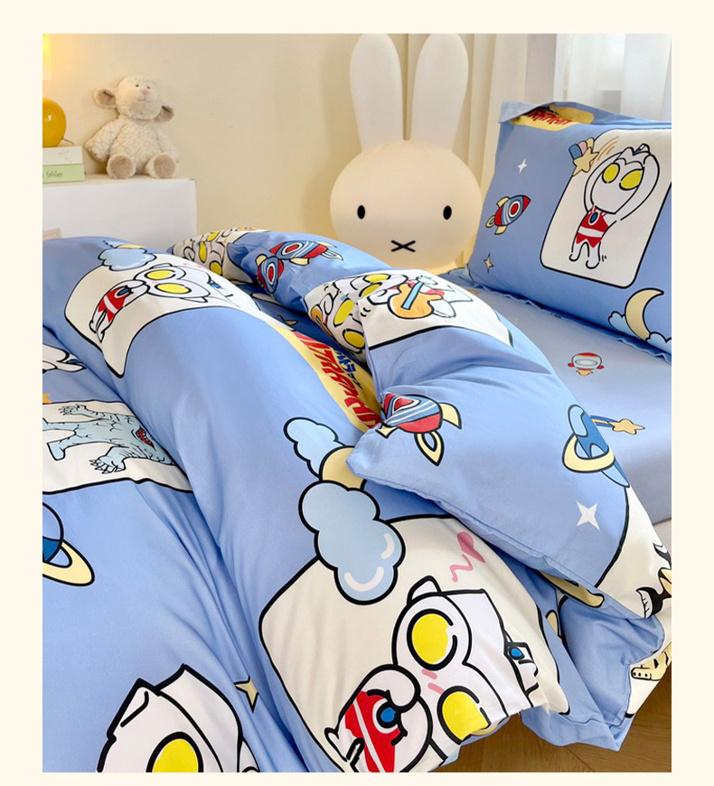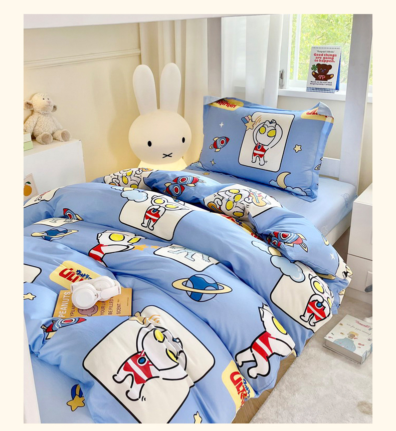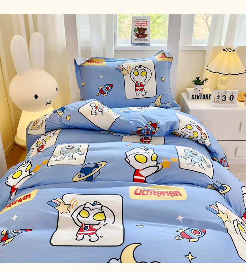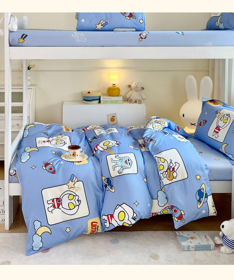 当前位置: 91家纺网 > 商品网购 > 床品套件 > 三件套 > 蘭菲家纺 2025新款学生季经典奥特曼系列全棉印花三件套、四件套 太空游