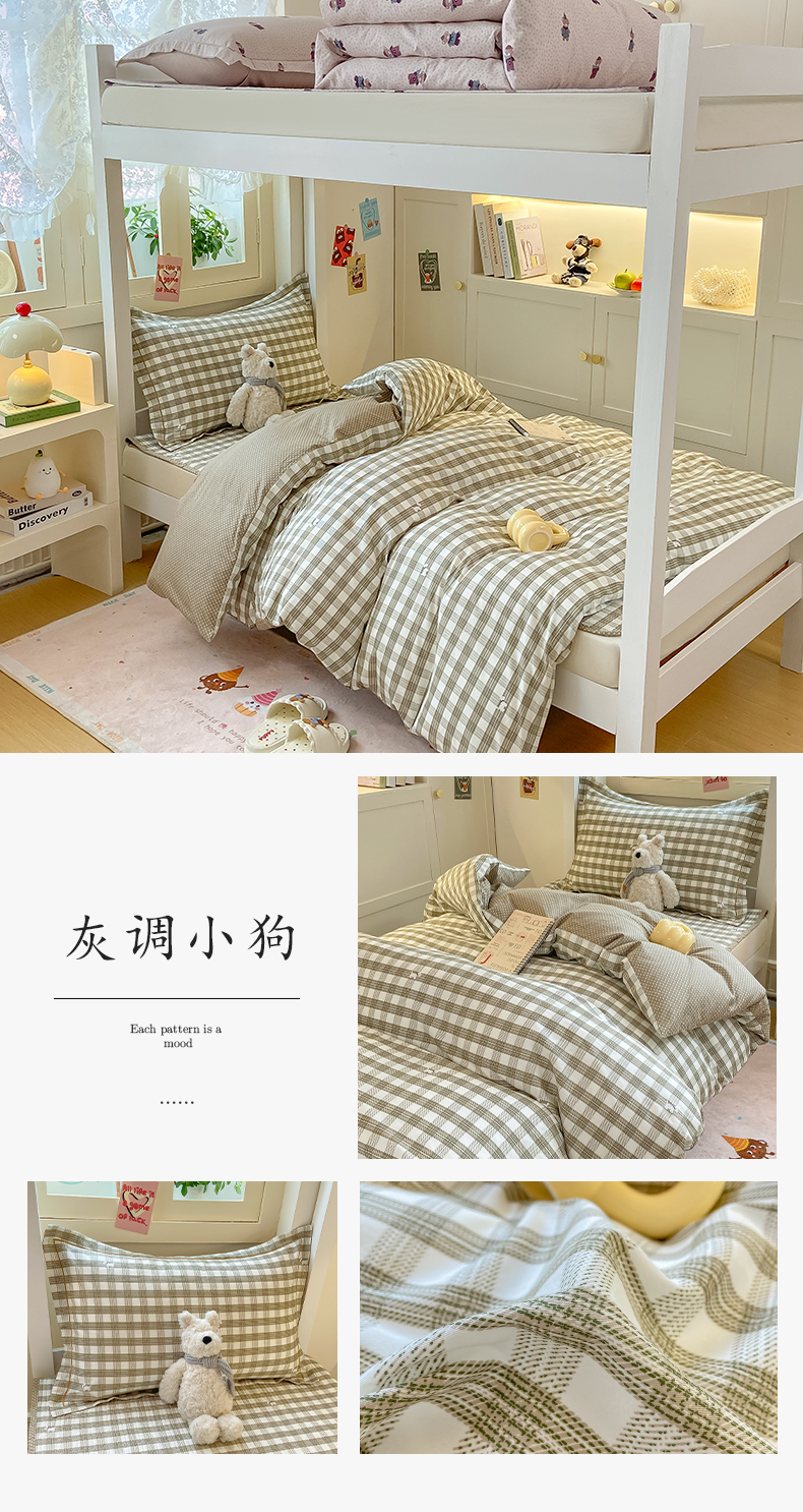 富之航家纺 2025新款全棉三件套 灰调小狗