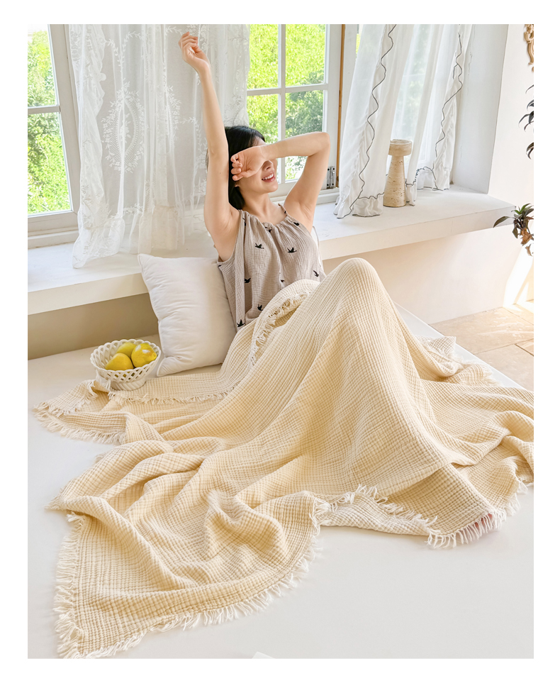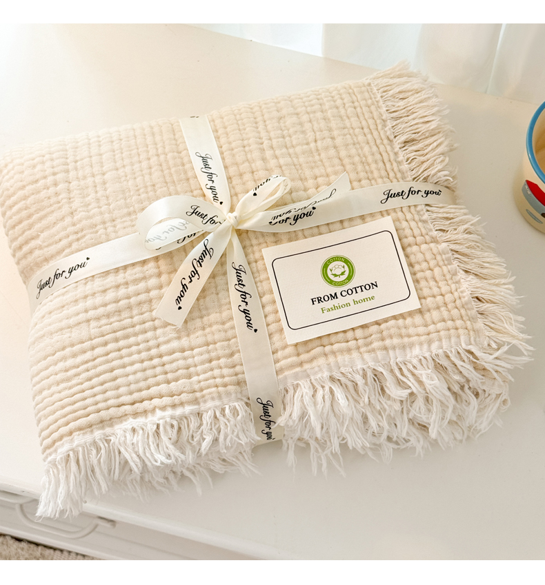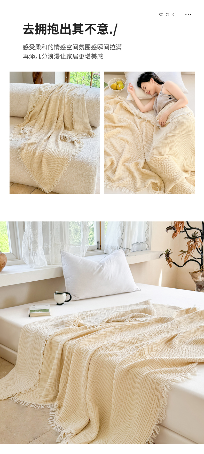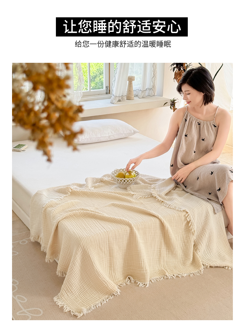 商品名称:丹本家纺 2025新款双层纱流苏全棉纯棉毯纯棉流苏款盖毯夏被夏凉被空调被 米色