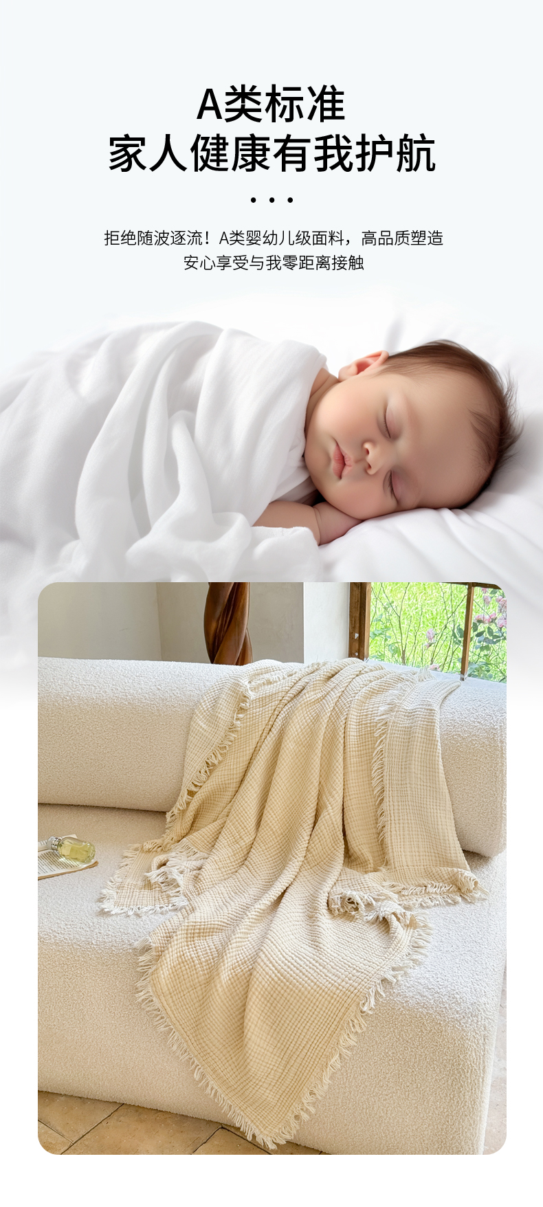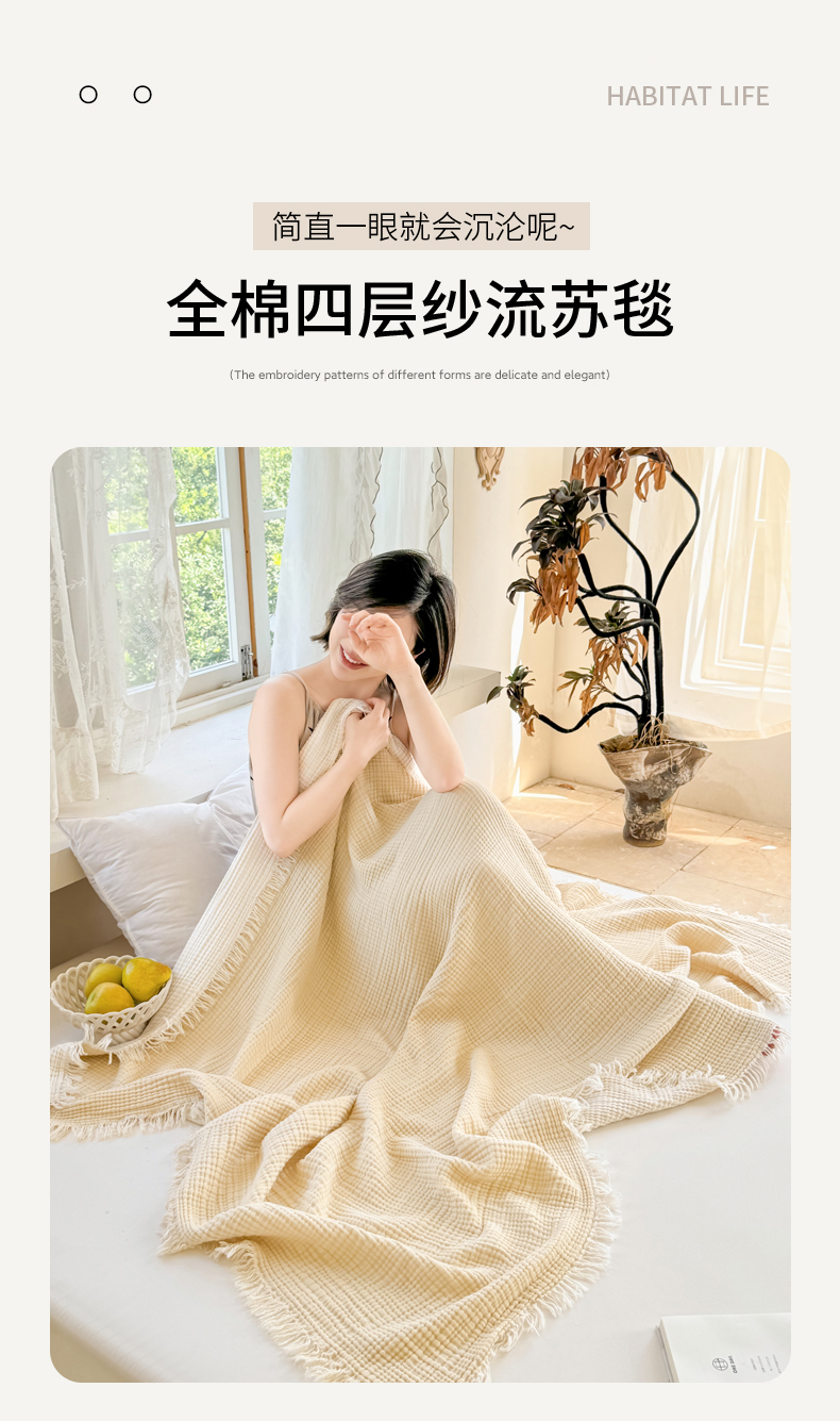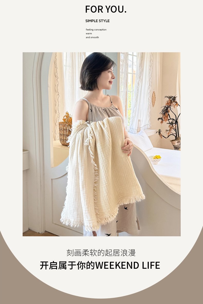 商品名称:丹本家纺 2025新款双层纱流苏全棉纯棉毯纯棉流苏款盖毯夏被夏凉被空调被 米色