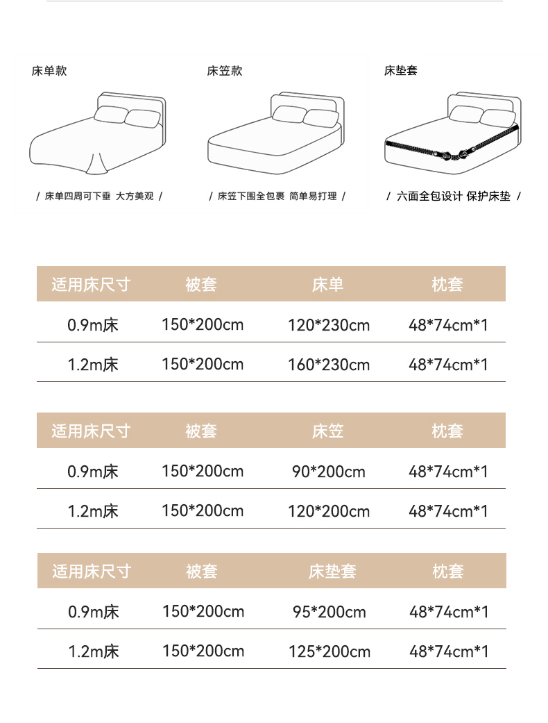 1.2m床垫套款:被套150x200cm、枕套1只、床垫套130x210cm | ¥48.00 |
