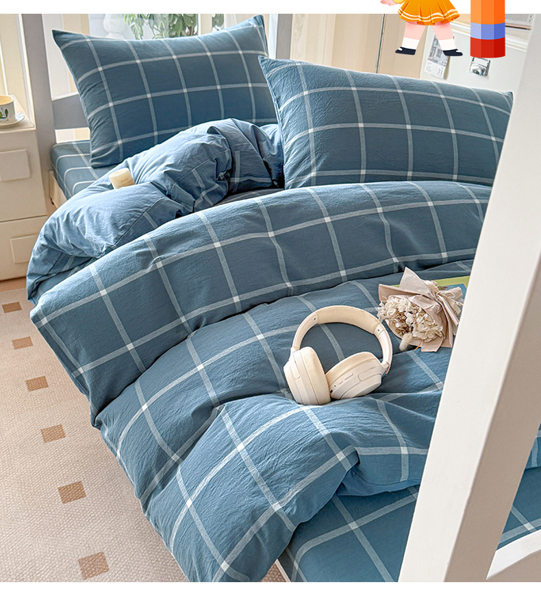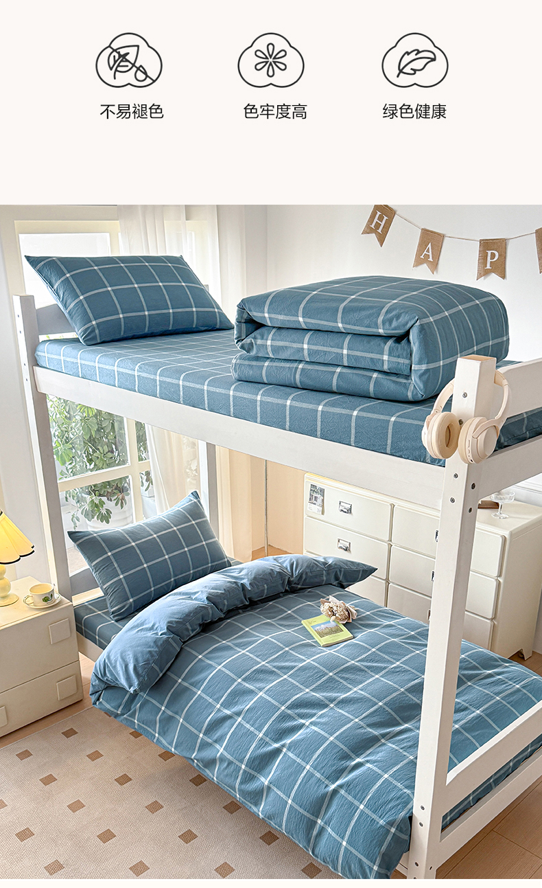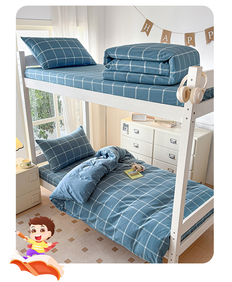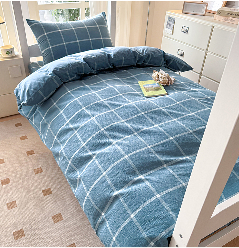 当前位置: 91家纺网 > 商品网购 > 床品套件 > 三件套 > 盛秋家纺 2025新款水洗棉格子学生小三套套件 灰大格+蓝灰
