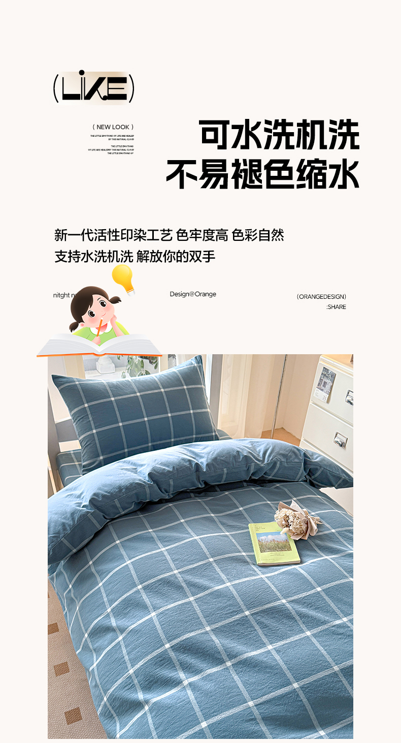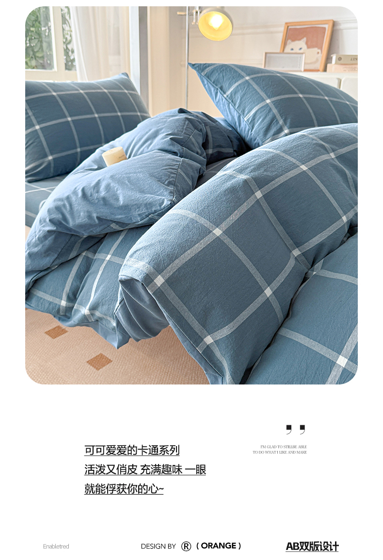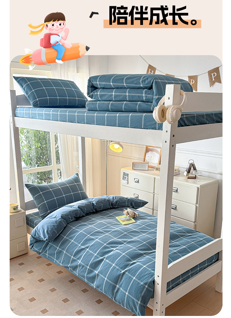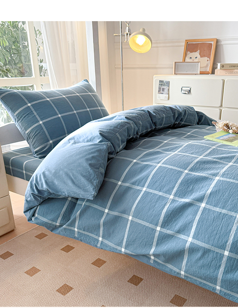 当前位置: 91家纺网 > 商品网购 > 床品套件 > 三件套 > 盛秋家纺 2025新款水洗棉格子学生小三套套件 灰大格+蓝灰
