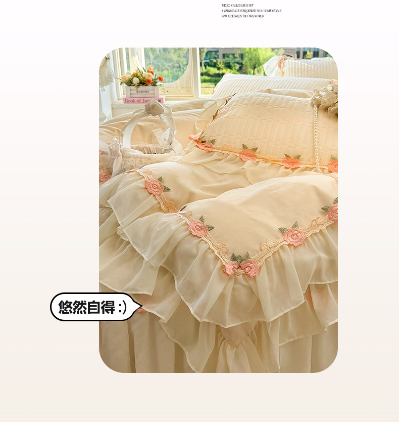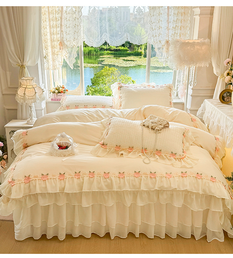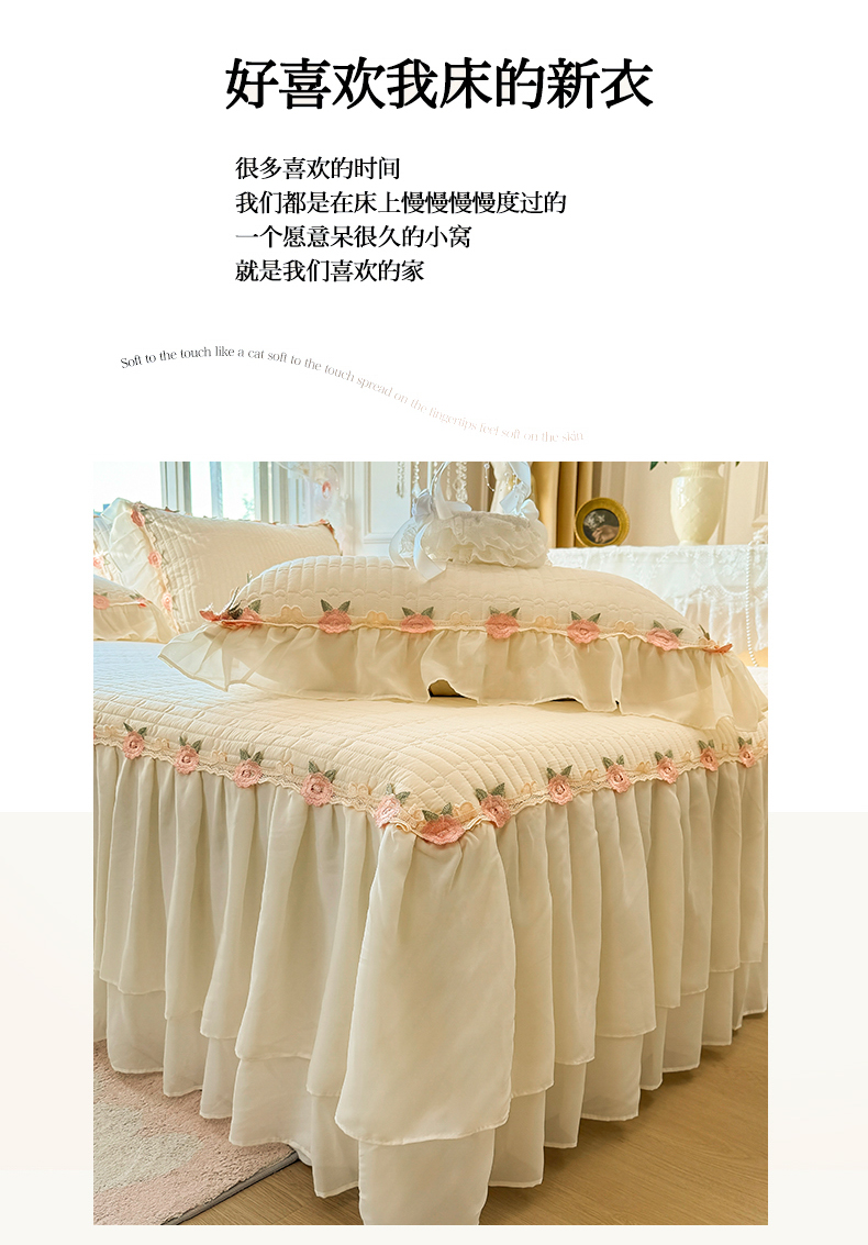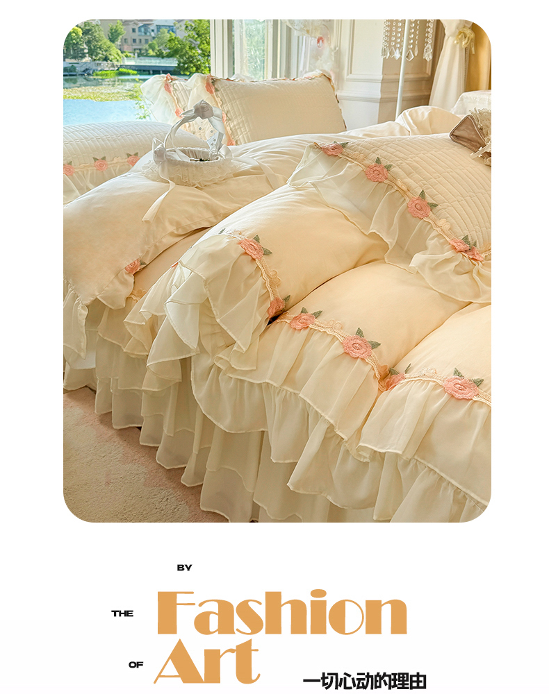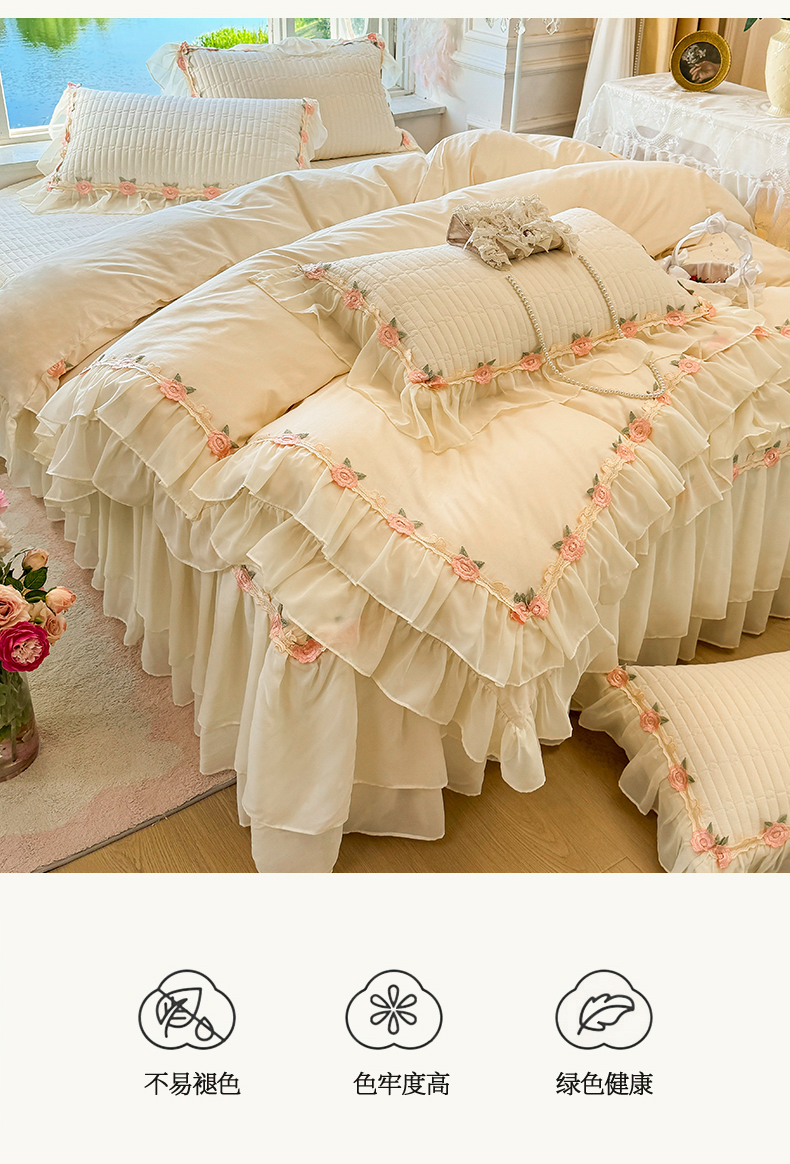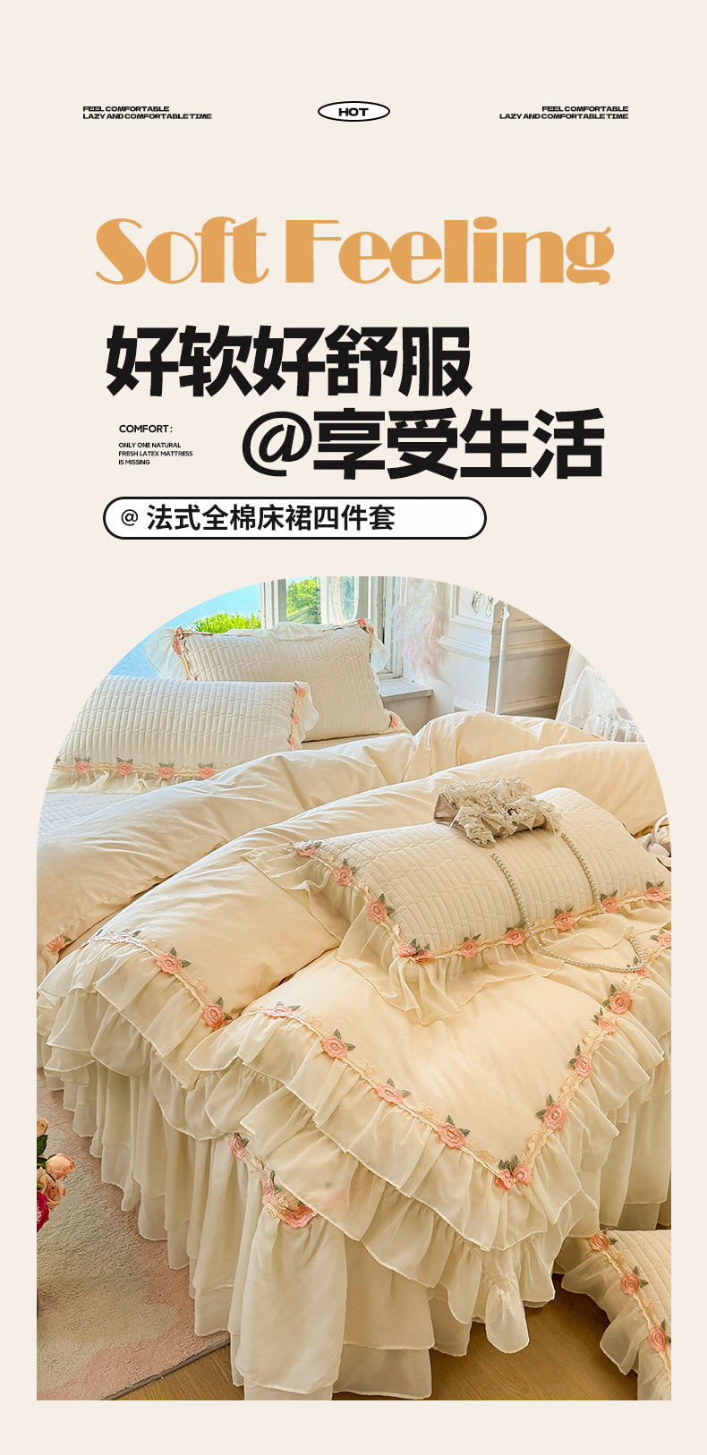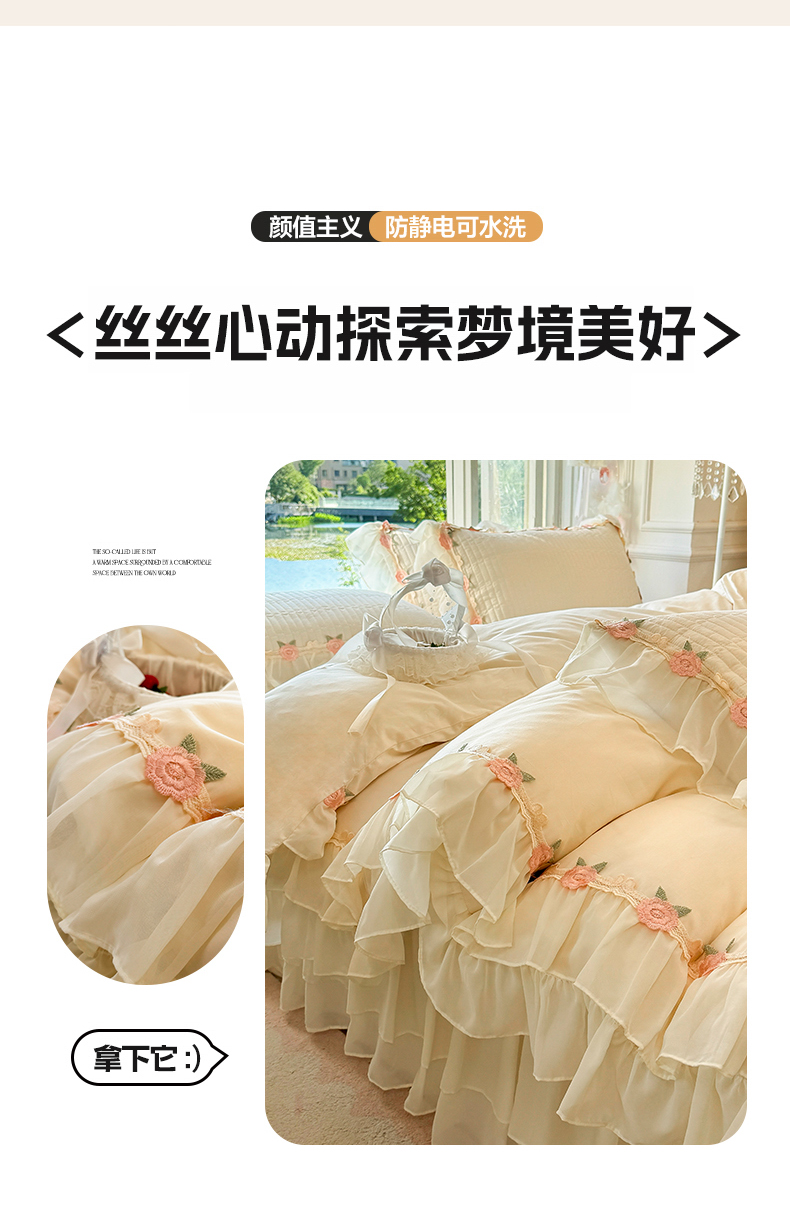 当前位置: 91家纺网 > 商品网购 > 床品套件 > 四件套 > 全棉普通四件套 > 虹星家纺 2025新款玫瑰花语全棉纯棉床裙款四件套 玫瑰花语-奶昔白
