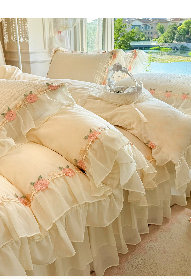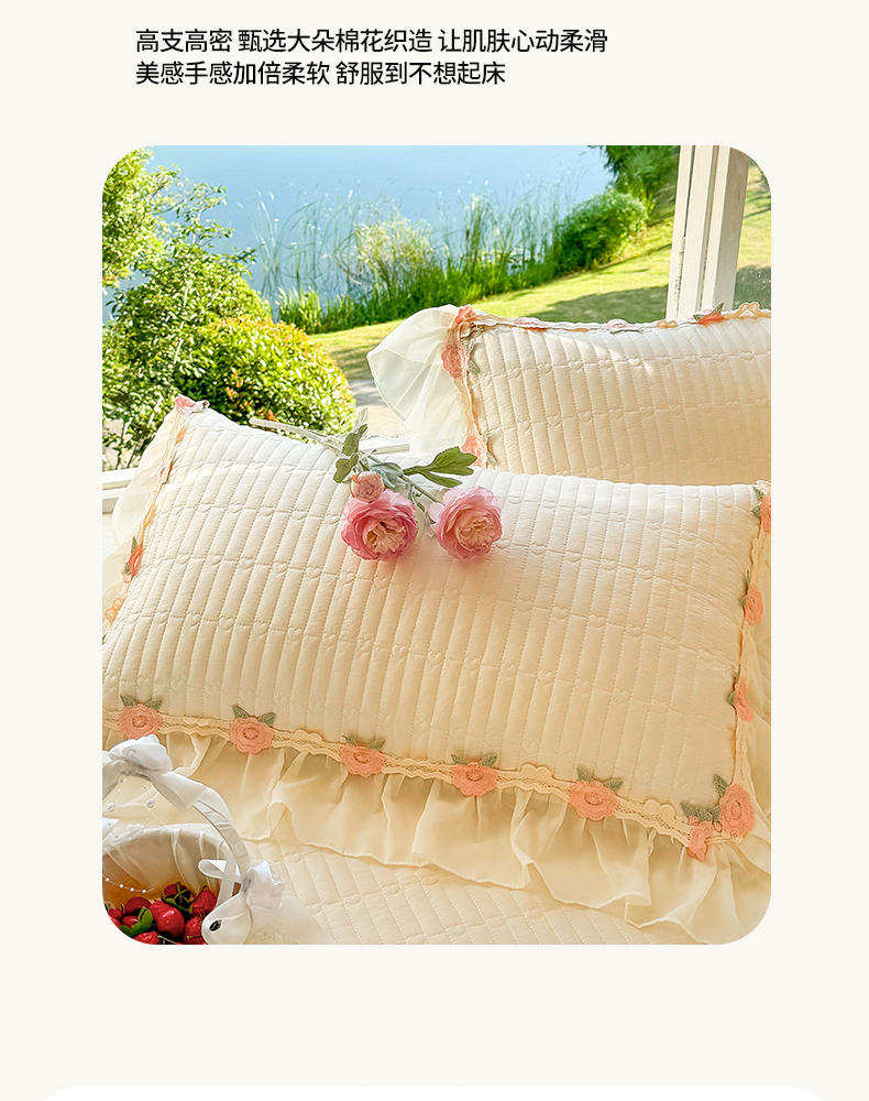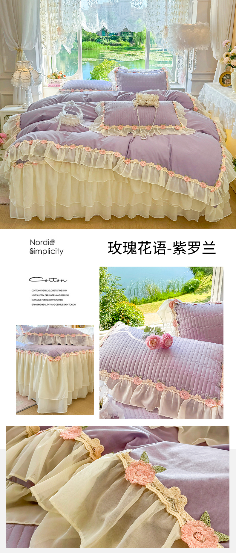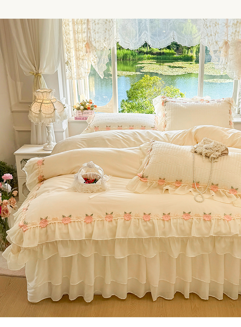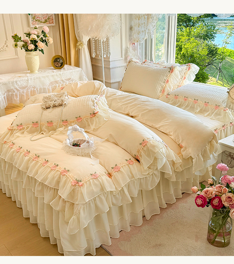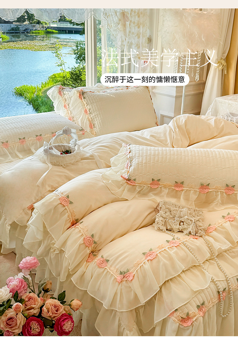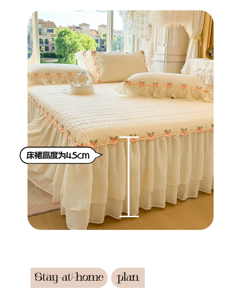 当前位置: 91家纺网 > 商品网购 > 床品套件 > 四件套 > 全棉普通四件套 > 虹星家纺 2025新款玫瑰花语全棉纯棉床裙款四件套 玫瑰花语-奶昔白