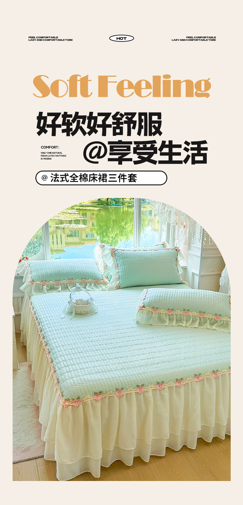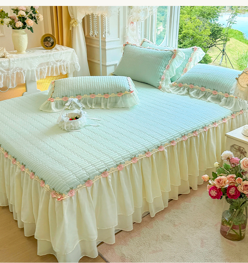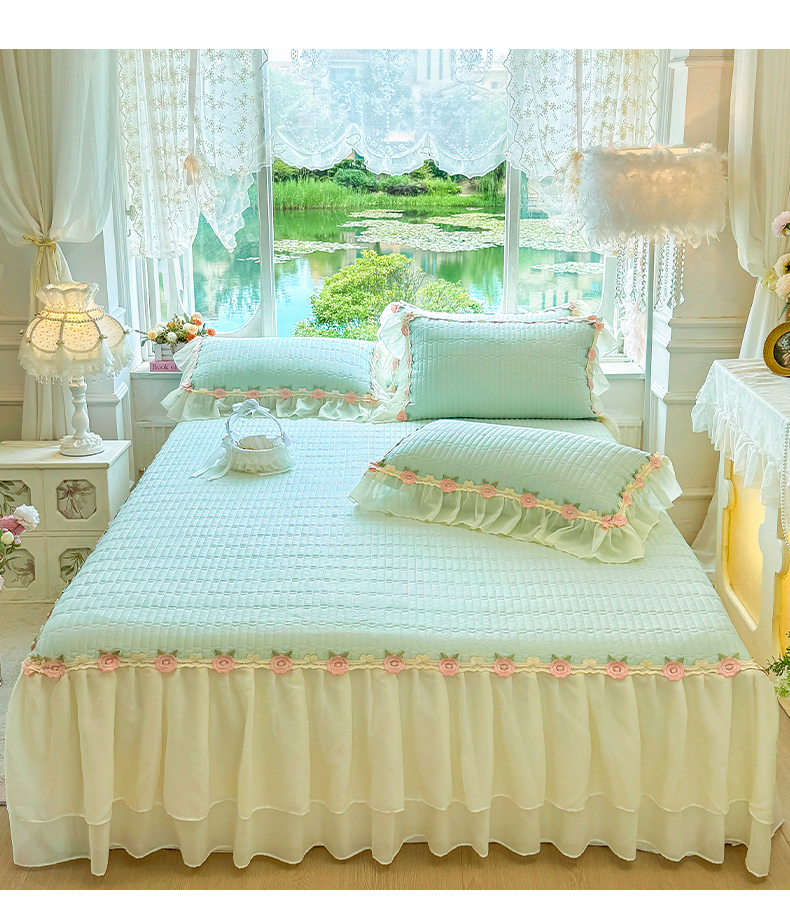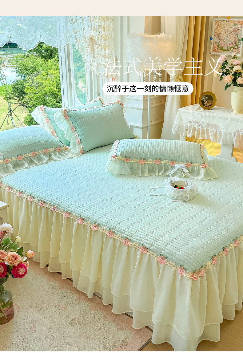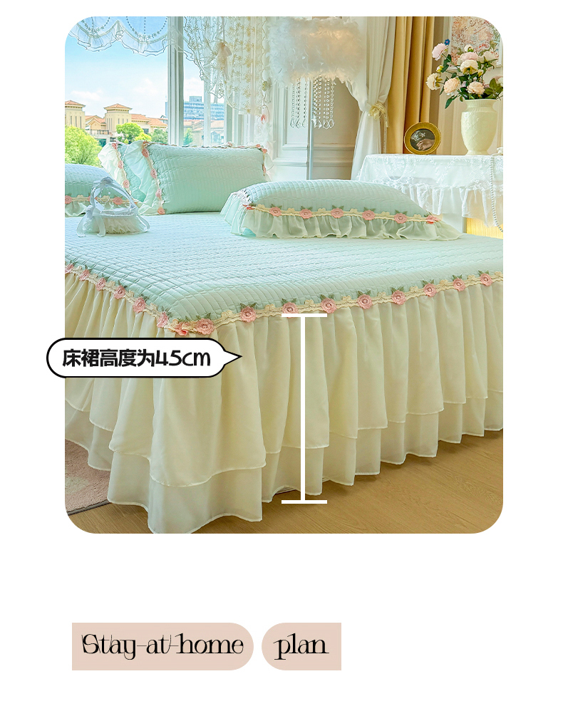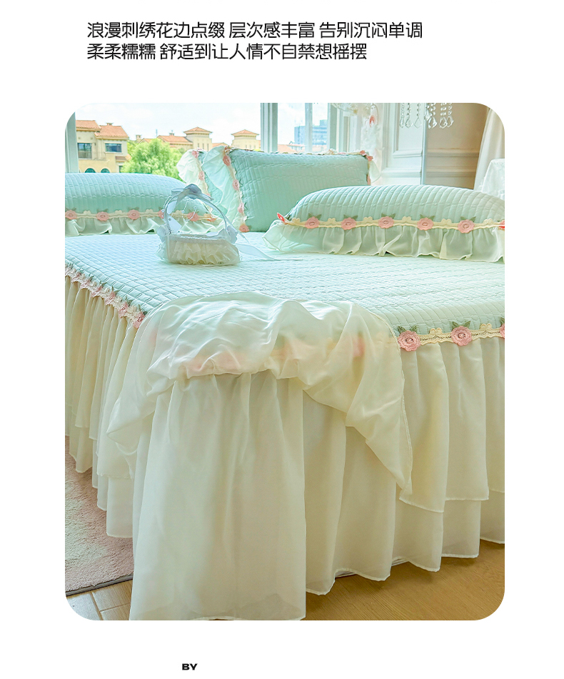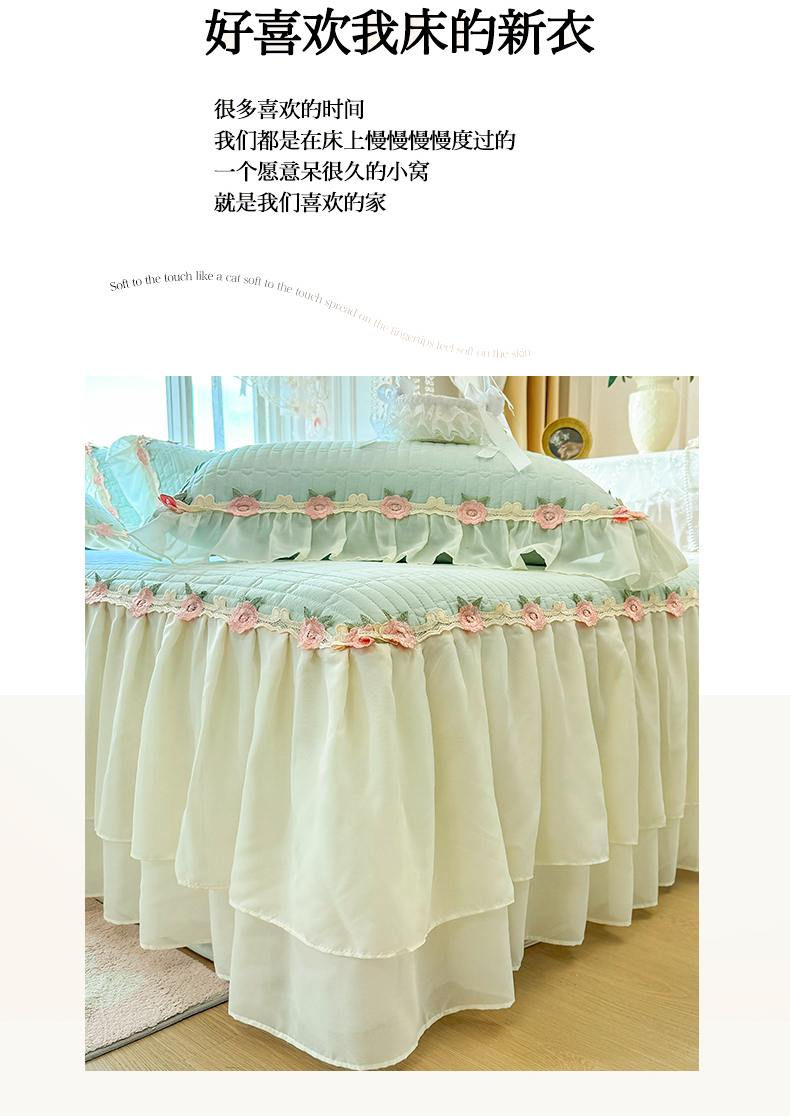• 91家纺网 家纺一手货源 找家纺 虹星家纺 2025新款玫瑰花语全棉纯棉床裙三件套单床裙床裙单件 玫瑰花语-抹茶绿