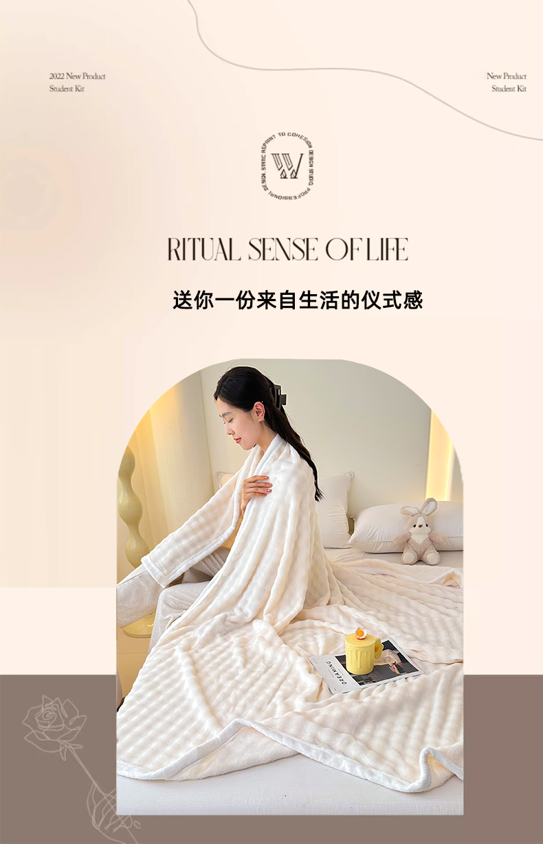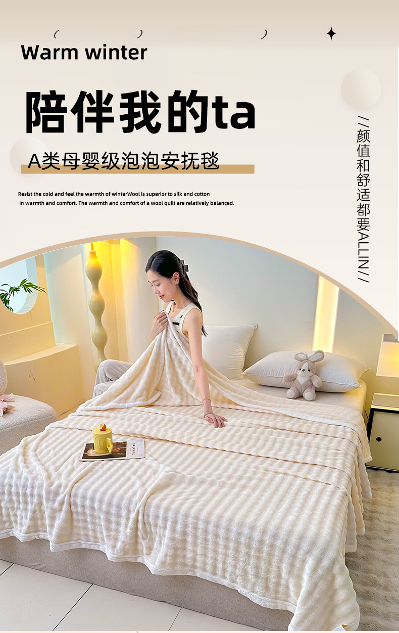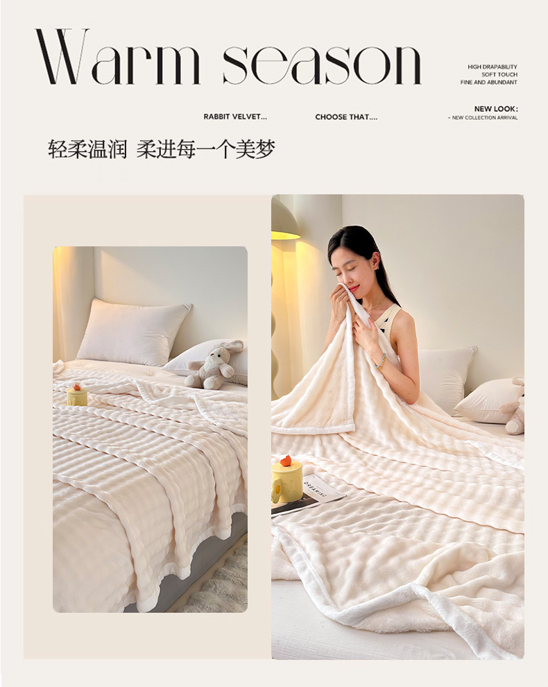 商品名称:无瑕家居 2025新款跨境多功能毛毯高克重法莱绒牛奶绒珊瑚绒兔兔绒包边毛毯毯子 兔兔绒-香芋紫