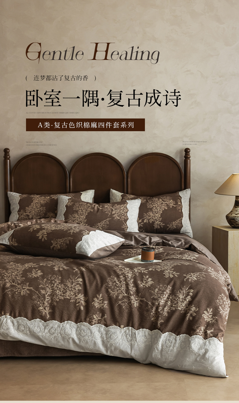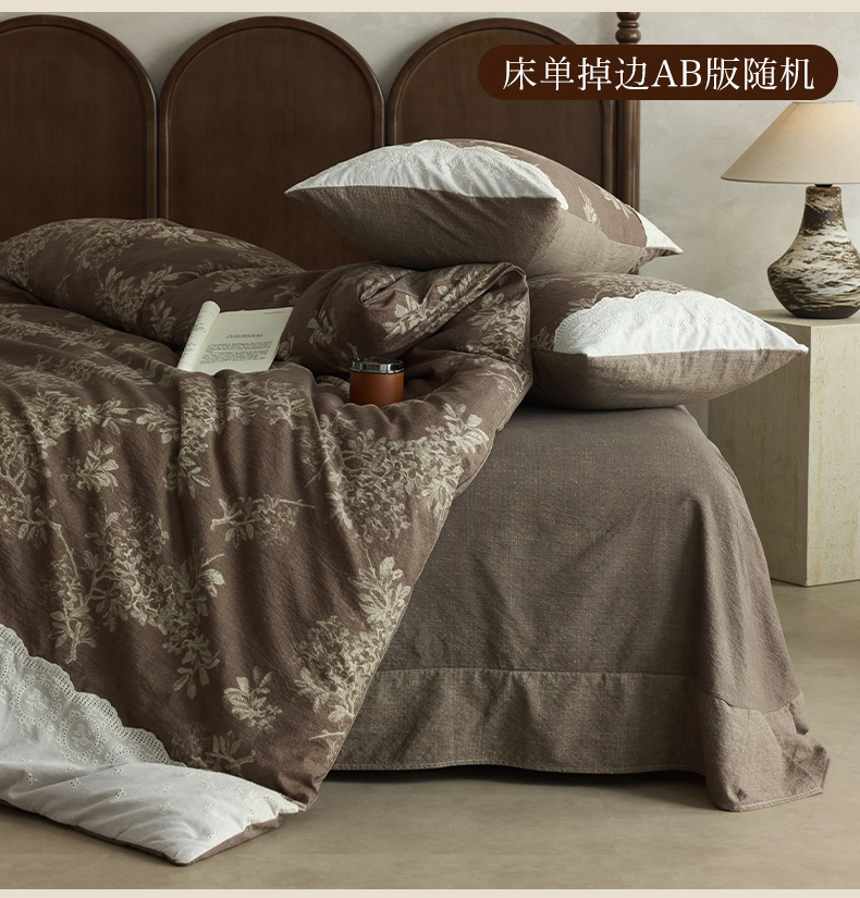 (总)迷尚家居 2025新款复古色织仿棉麻全棉花边四件套,迪奥咖-棉麻,风木槿咖-棉麻,枫林晚-棉麻,古奈绿-棉麻,锦瑟-棉麻,俏颜-棉麻,秋恋红-棉麻,颂青时-棉麻,砚秋紫-棉麻,玉环-棉麻,玉茗-棉麻