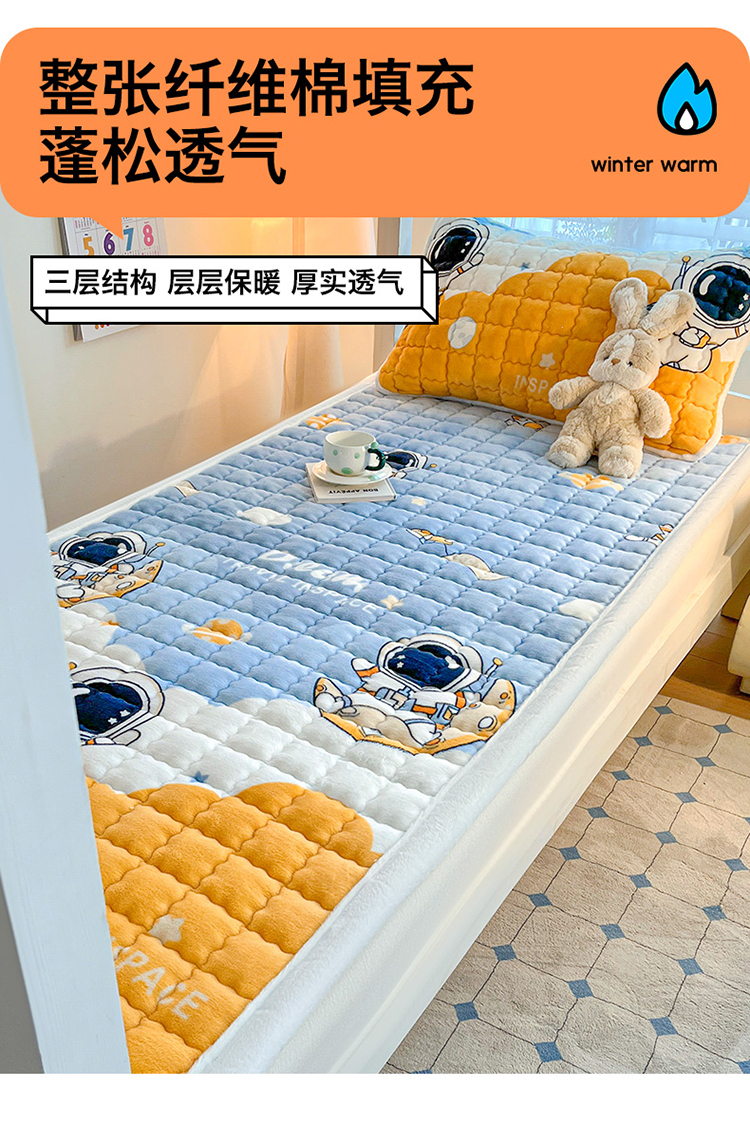 (总)莉莉安家纺 2025牛奶绒床垫褥子软垫家用加厚宿舍学生单人铺垫被冬季加绒毛毯床褥,太空漫游,童话乐园,彩虹物语,欢乐颂,卡皮巴拉,蓝色小熊,洛丽塔,猫咪星空,萌宠熊宝,蜜桃女孩,甜蜜爱恋,甜甜兔,兔兔花语,星月传奇,幸运草莓,熊猫乐乐,郁金花香,宾利蓝,豆沙粉,宝石蓝,高级灰,春意盎然