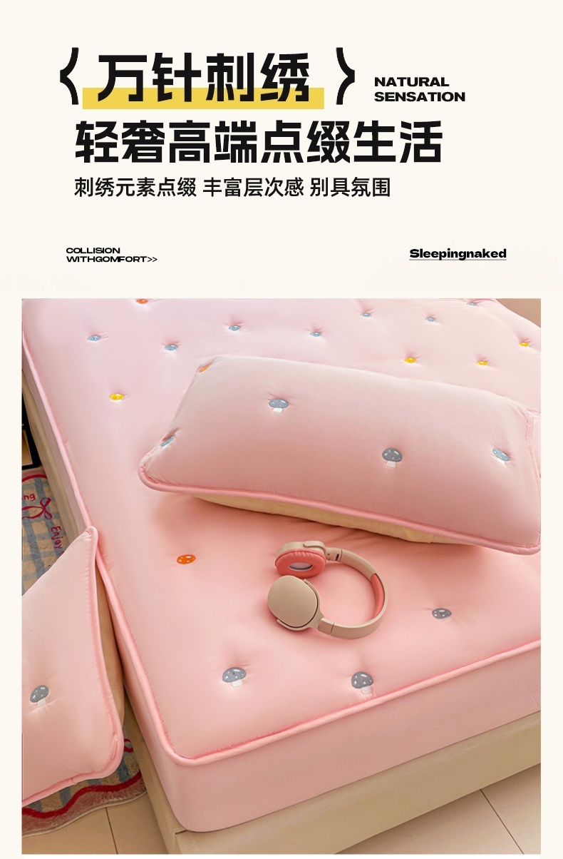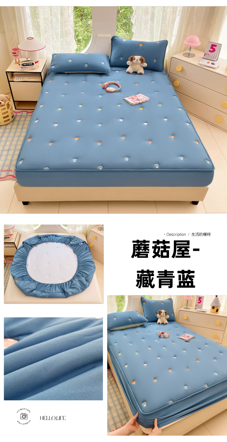 • 91家纺网 家纺一手货源 找家纺 梦舒羽 2025新款水洗棉刺绣夹棉床笠床笠防滑床罩床垫保护套榻榻米宿舍三件套 蘑菇屋-本白色