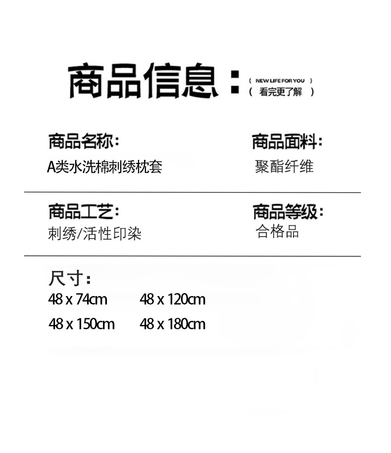 48x180A类水洗棉夹棉枕套/只