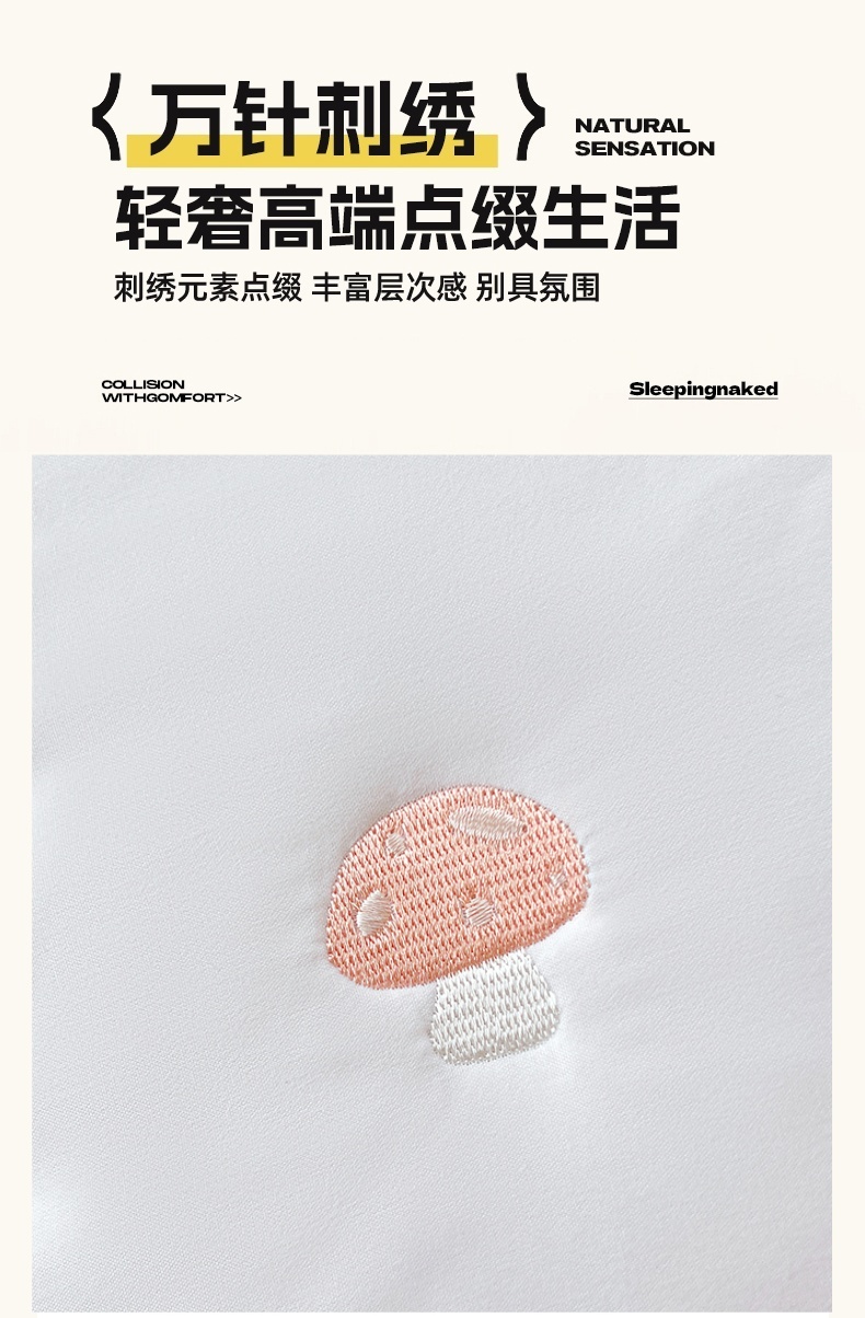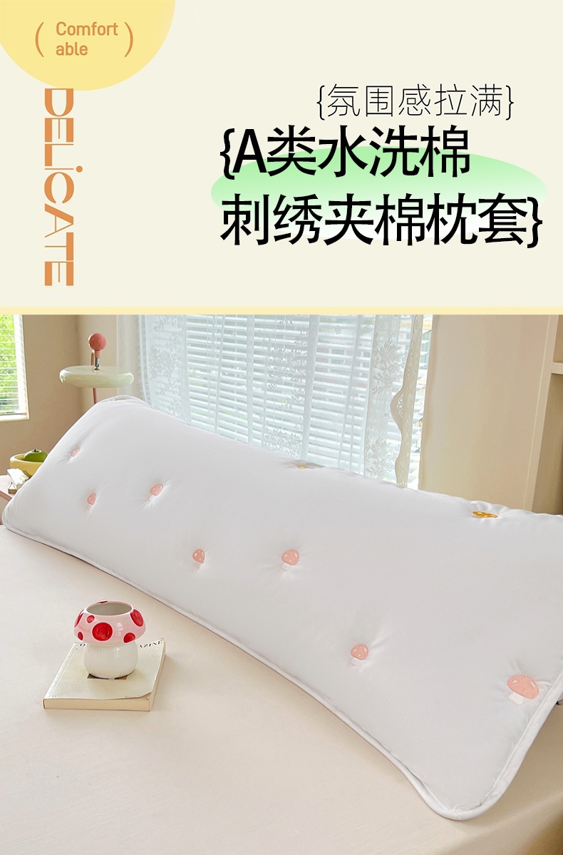 商品名称:梦舒羽 2025新款水洗棉刺绣双人夹棉枕套加厚学生情侣1.5m枕头套1.8米枕芯套 蘑菇屋-本白色