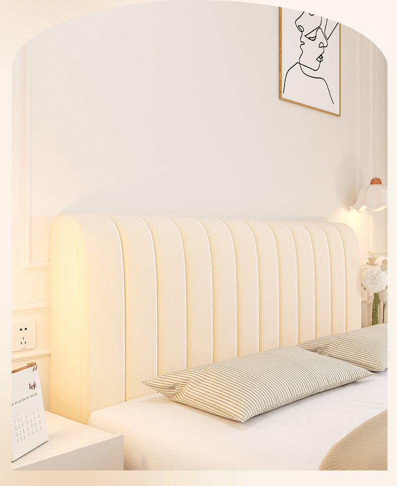沐沐家纺 2026新款几何竖条奶油风床头罩 几何-浅灰