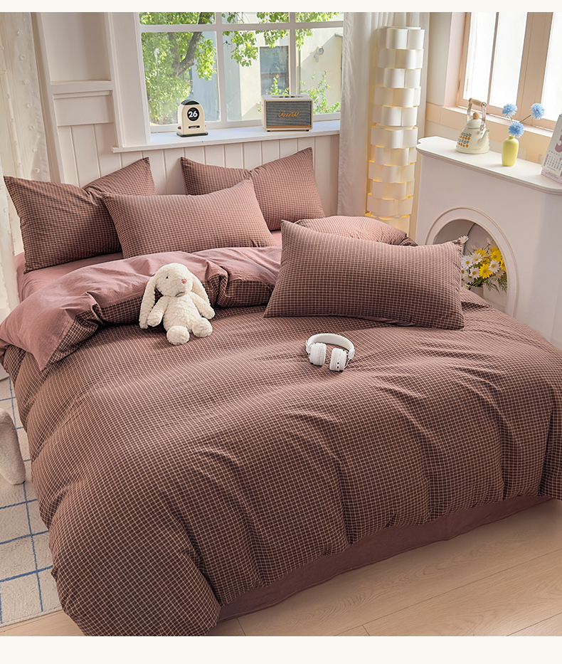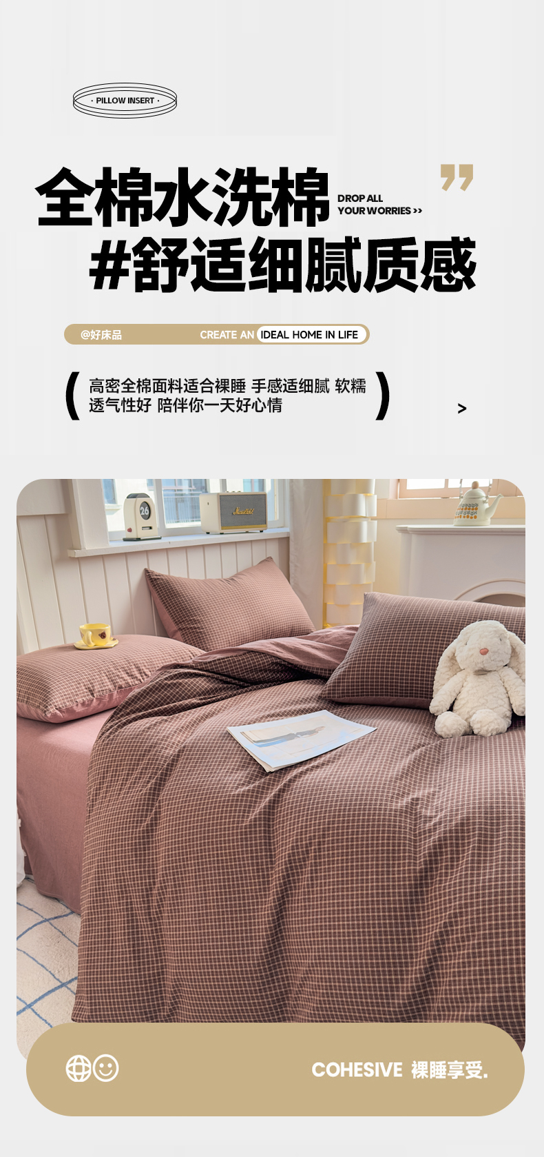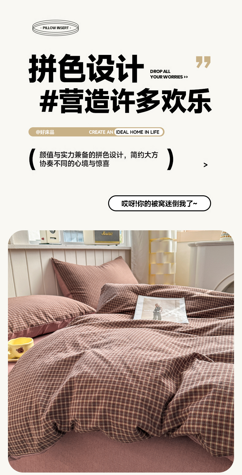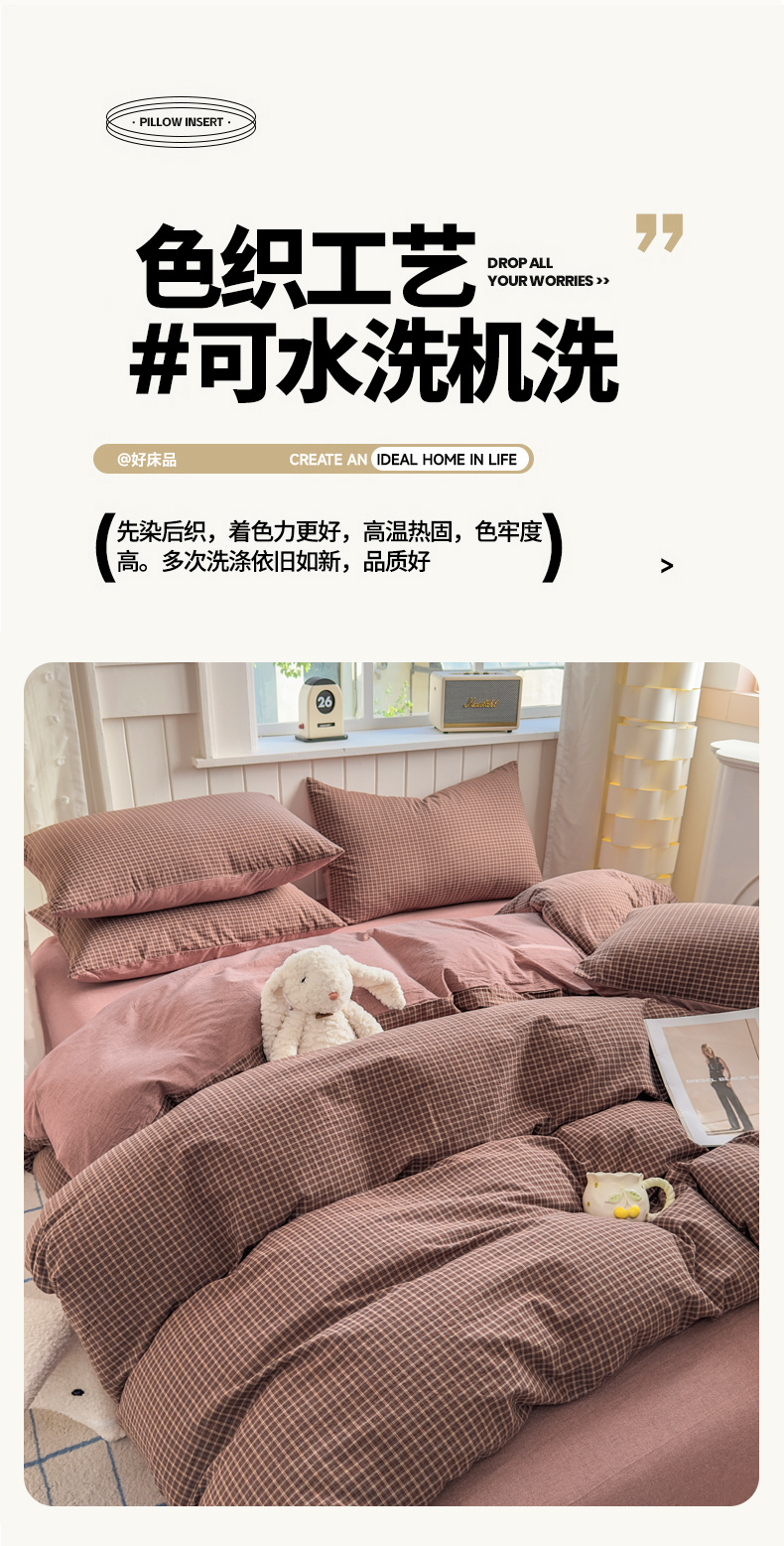 当前位置: 91家纺网 > 商品网购 > 床品套件 > 四件套 > 水洗棉四件套 > 晚依家纺 2025新款A类全棉色织水洗棉四件套纯棉格子纯色被套学生宿舍三件套定制定做 沐风-焦糖