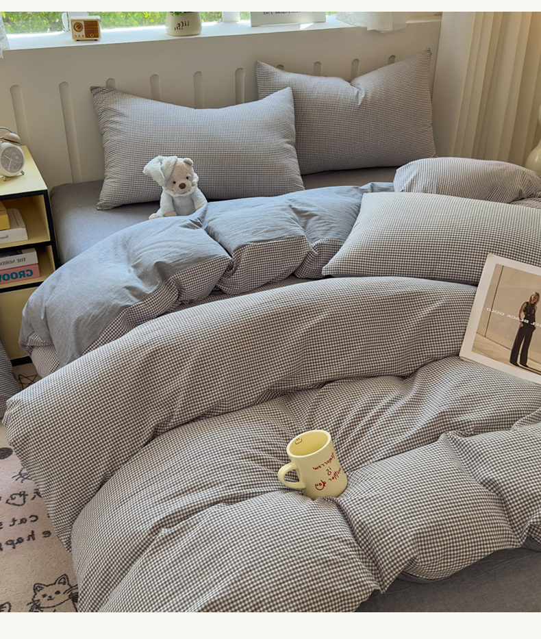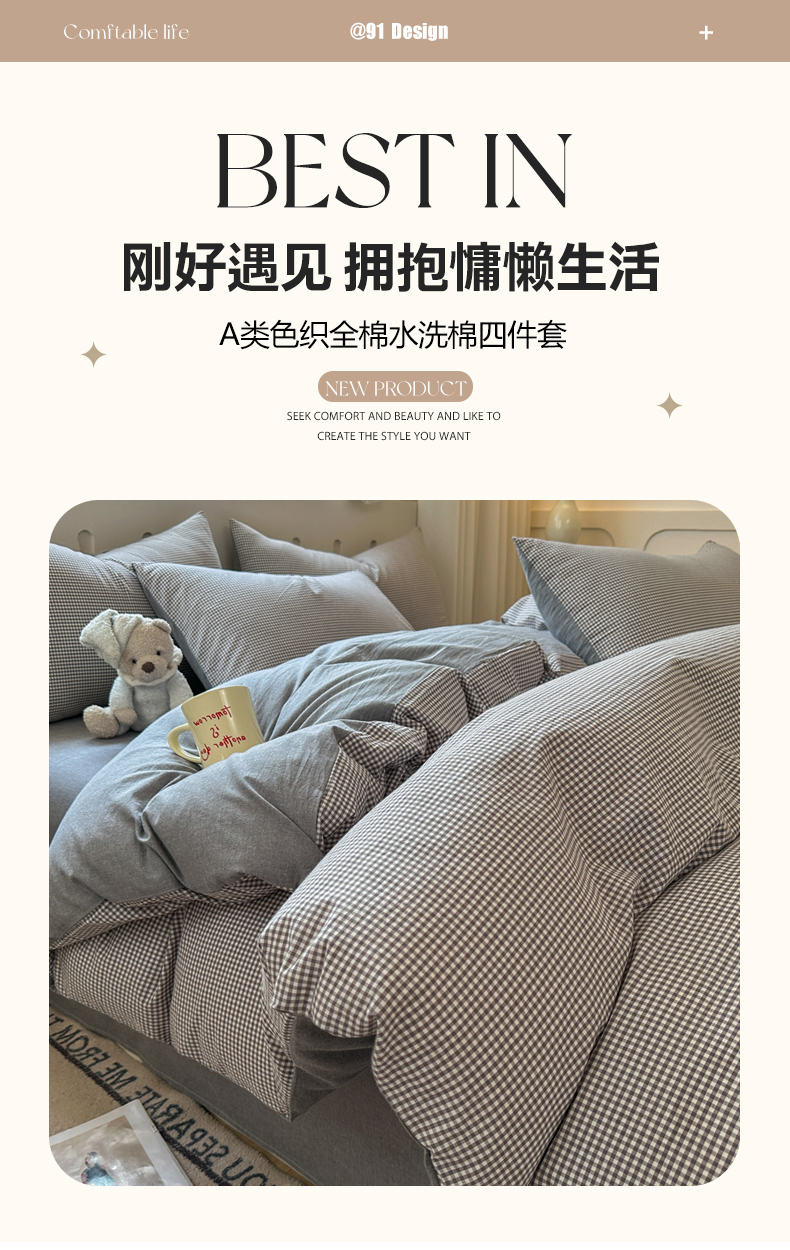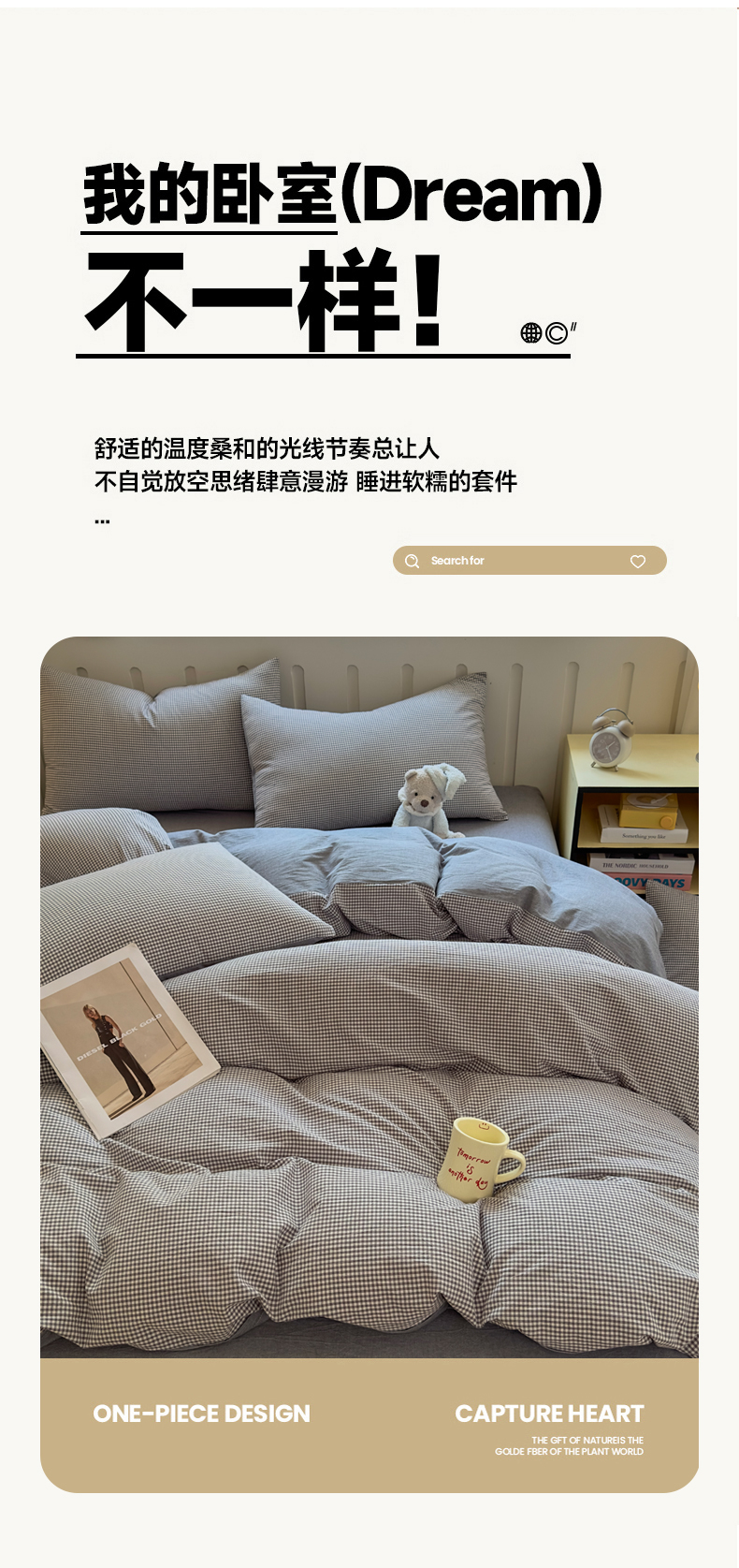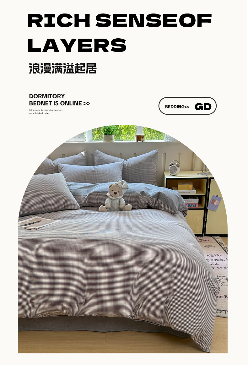 当前位置: 91家纺网 > 商品网购 > 床品套件 > 四件套 > 水洗棉四件套 > 晚依家纺 2025新款A类全棉色织水洗棉四件套纯棉格子纯色被套学生宿舍三件套定制定做 密格-烟灰