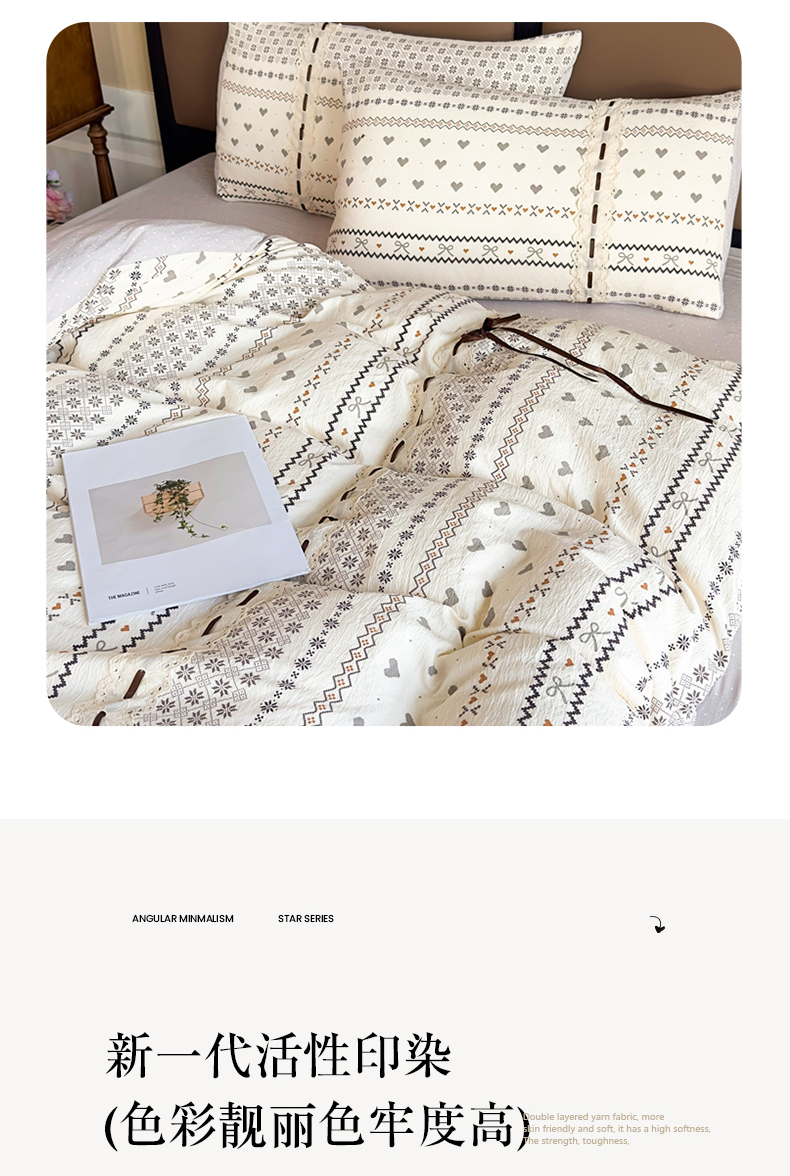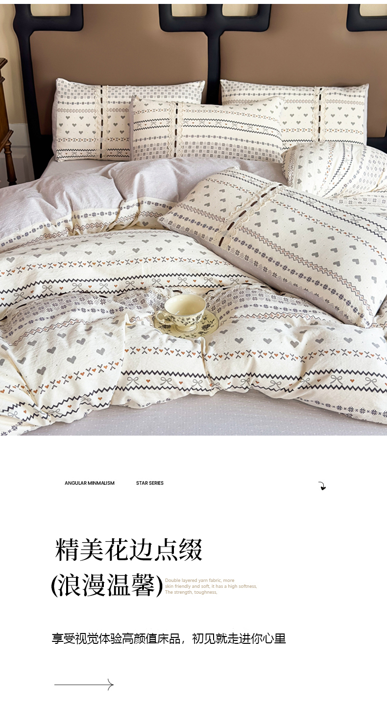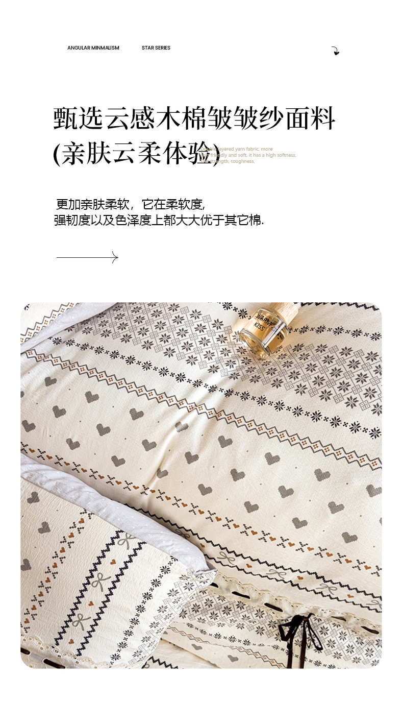 可思家纺2025新款云感木棉皱皱纱四件套 拾光悠悠