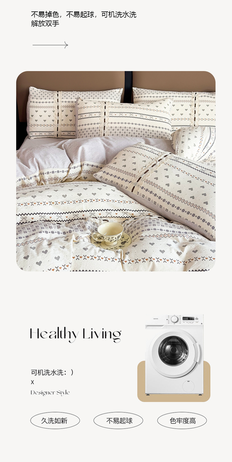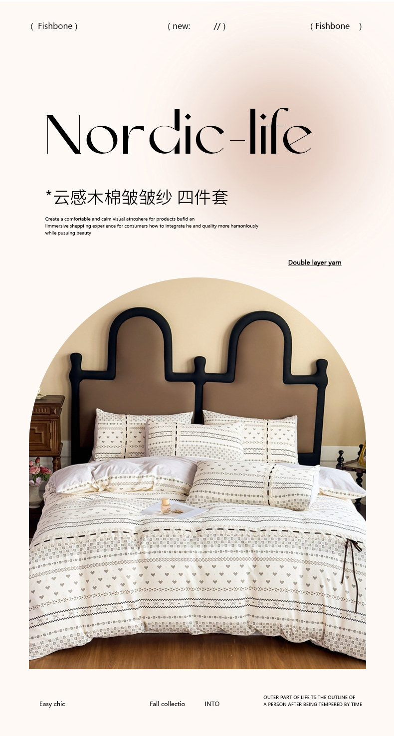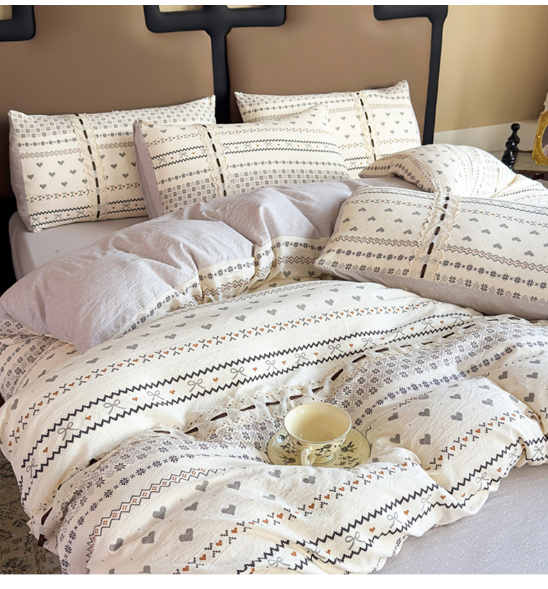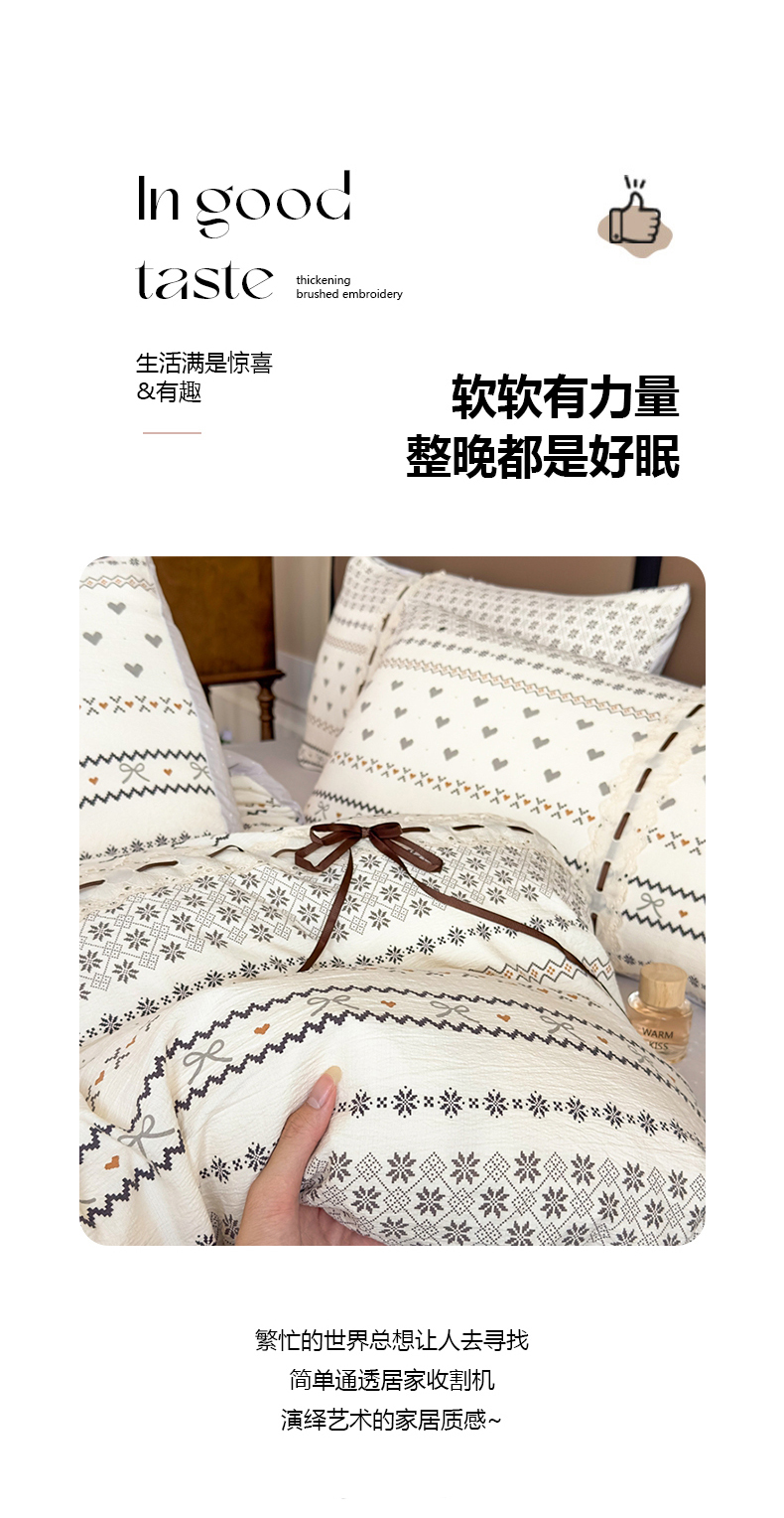 可思家纺2025新款云感木棉皱皱纱四件套 拾光悠悠