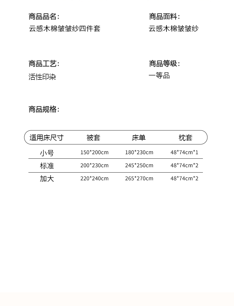 商品名称:可思家纺2025新款云感木棉皱皱纱四件套 拾光悠悠