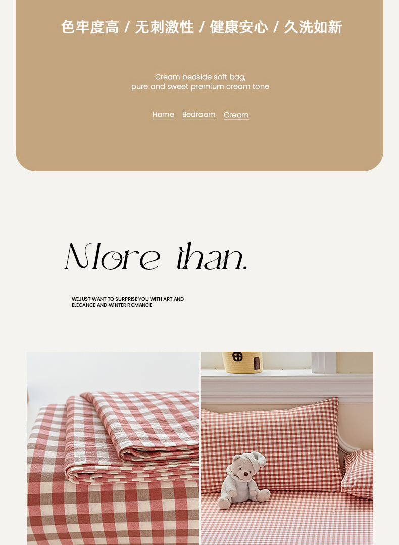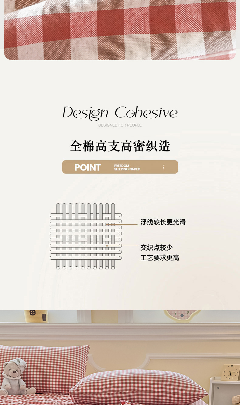 (总)菡宝 2025新款全棉纯棉色织小提花四件套支持定制定做尺寸,暴力熊卡其,暴力熊绿,大方块灰,大方块紫,千鸟格白,千鸟格灰,千鸟格绿,四叶草卡其