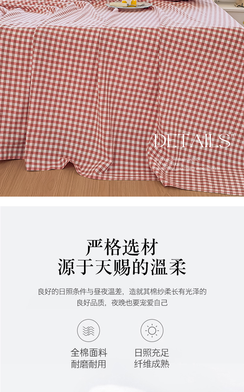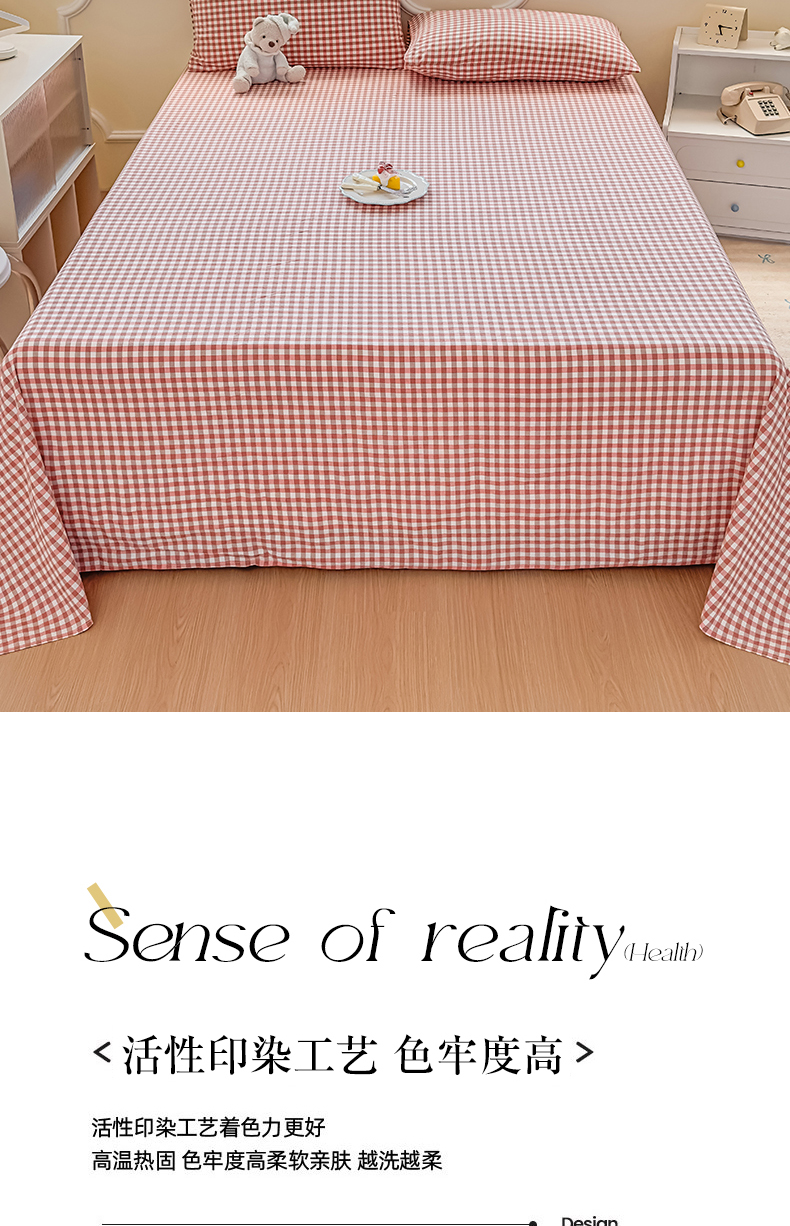 商品名称:菡宝 2025新款全棉纯棉色织水洗棉单床单 橘红小格