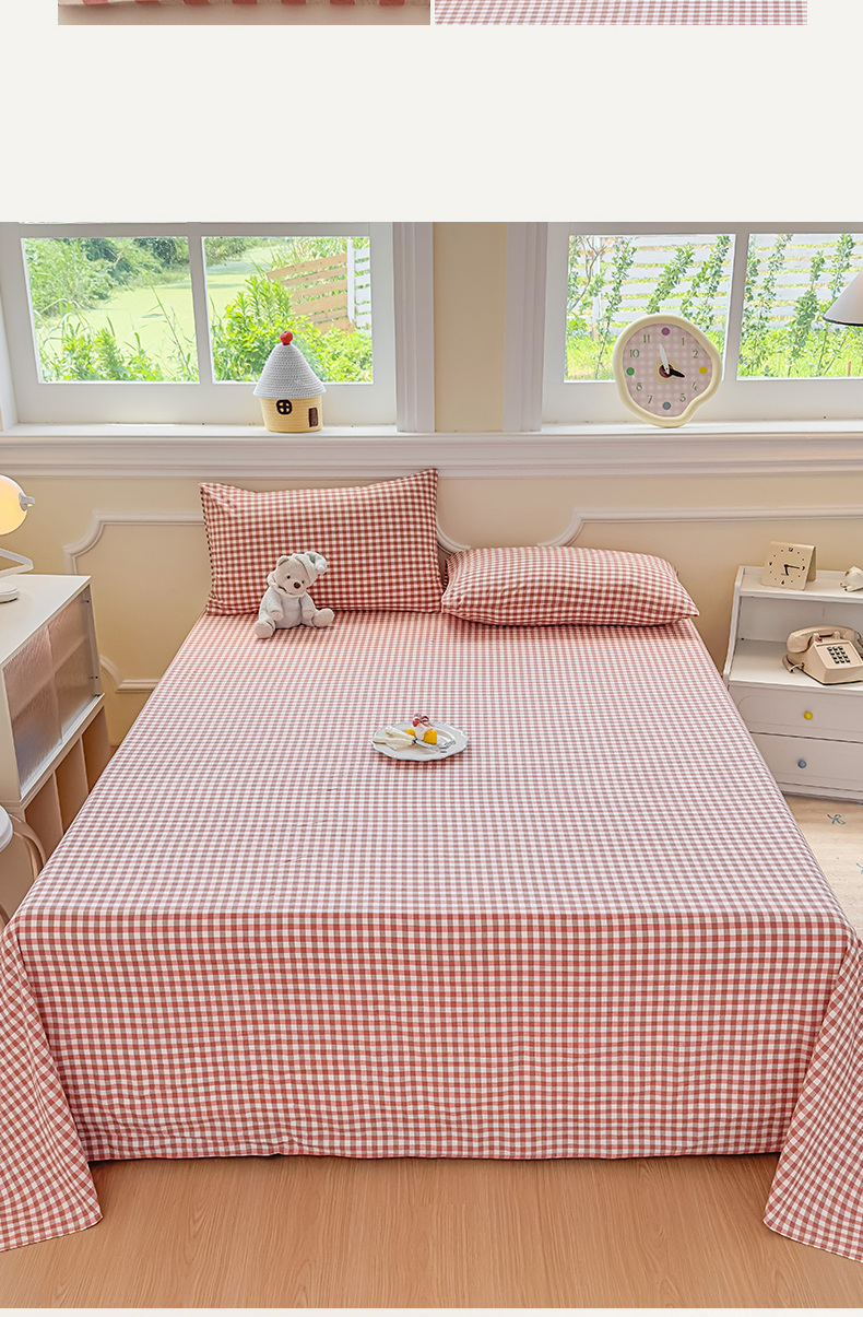 菡宝 2025新款全棉纯棉色织水洗棉单床单 橘红小格