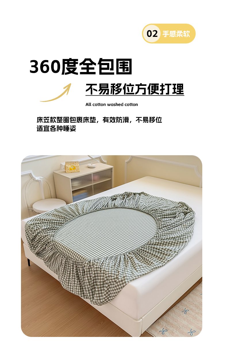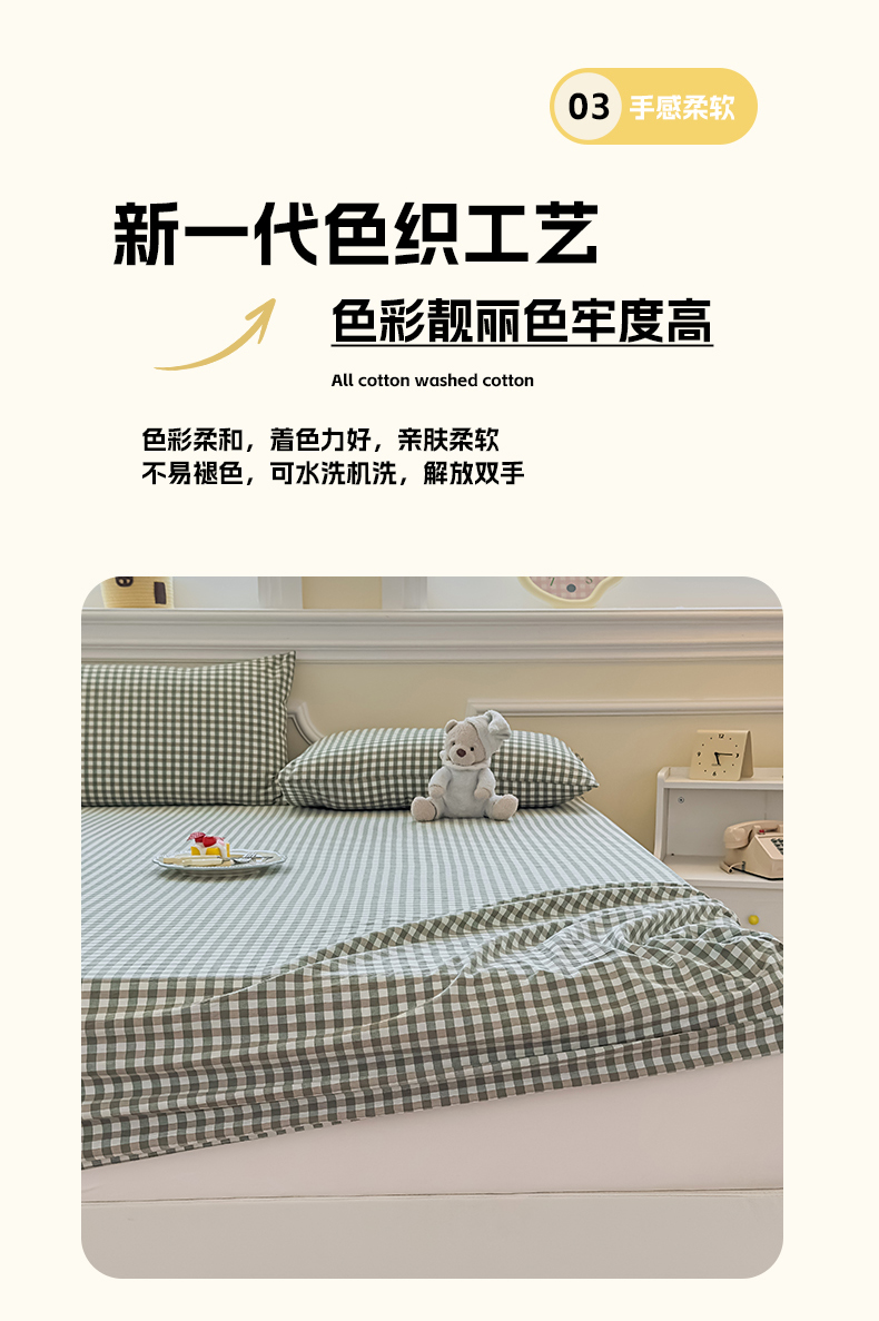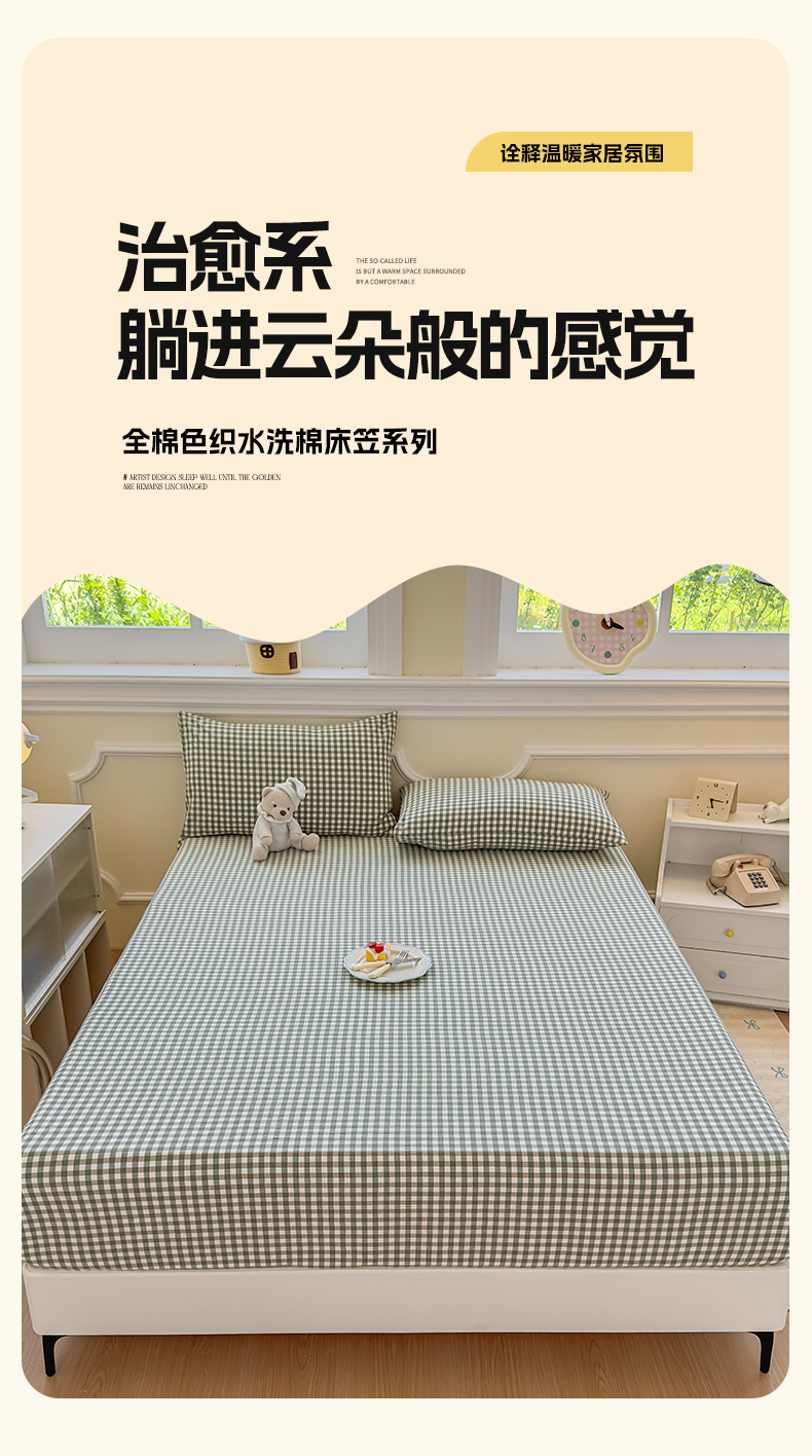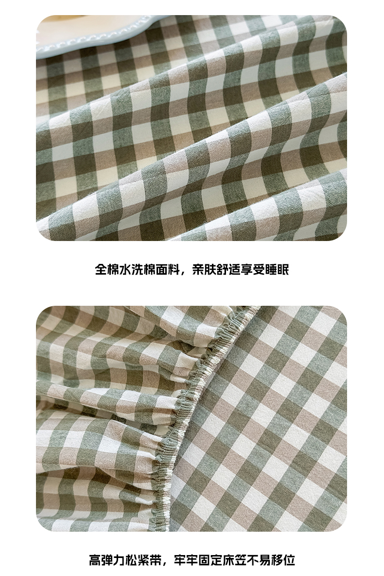 • 91家纺网 家纺一手货源 找家纺 菡宝 2025新款全棉纯棉色织水洗棉单单床笠 绿小格