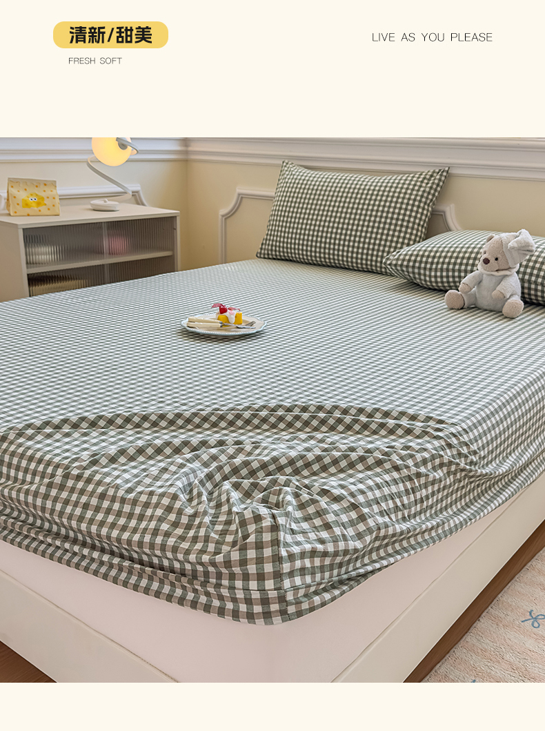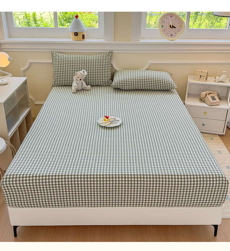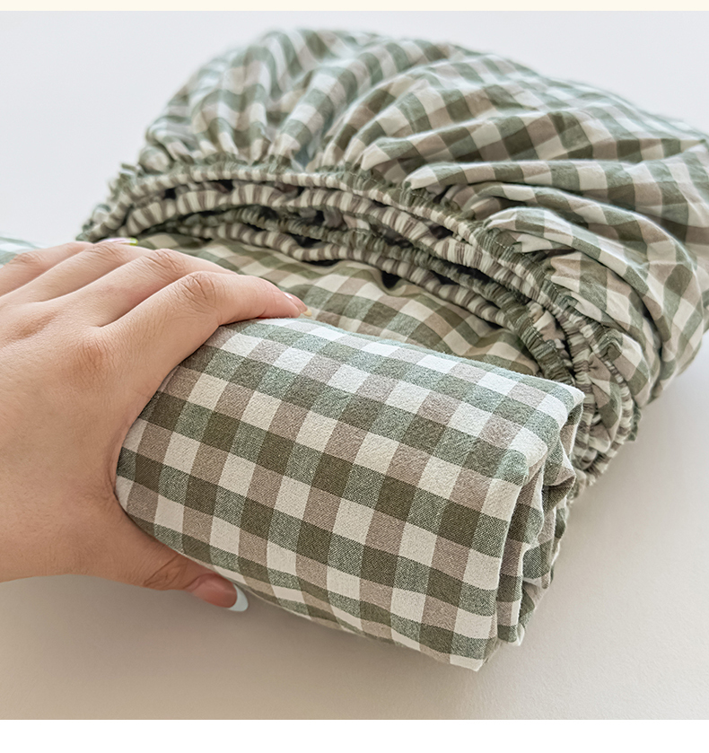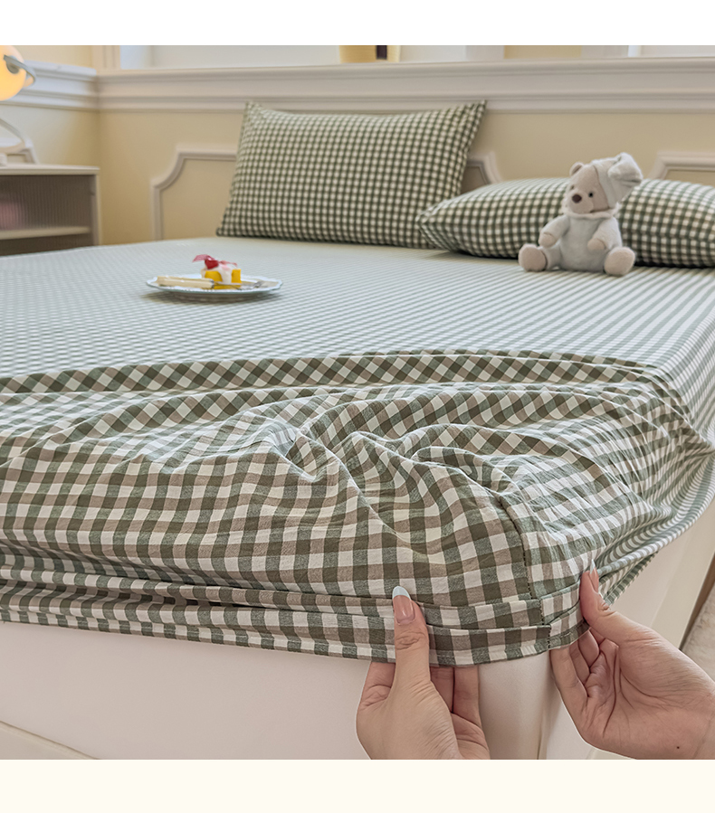菡宝 2025新款全棉纯棉色织水洗棉单单床笠 绿小格