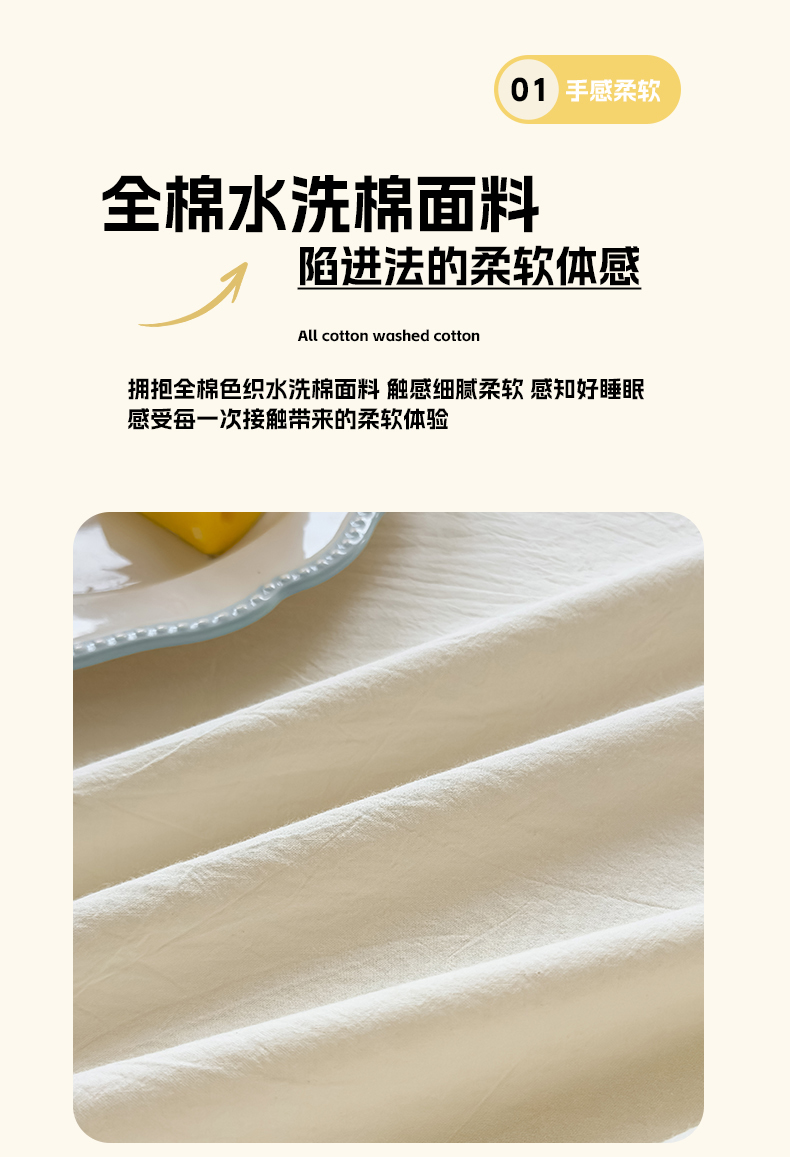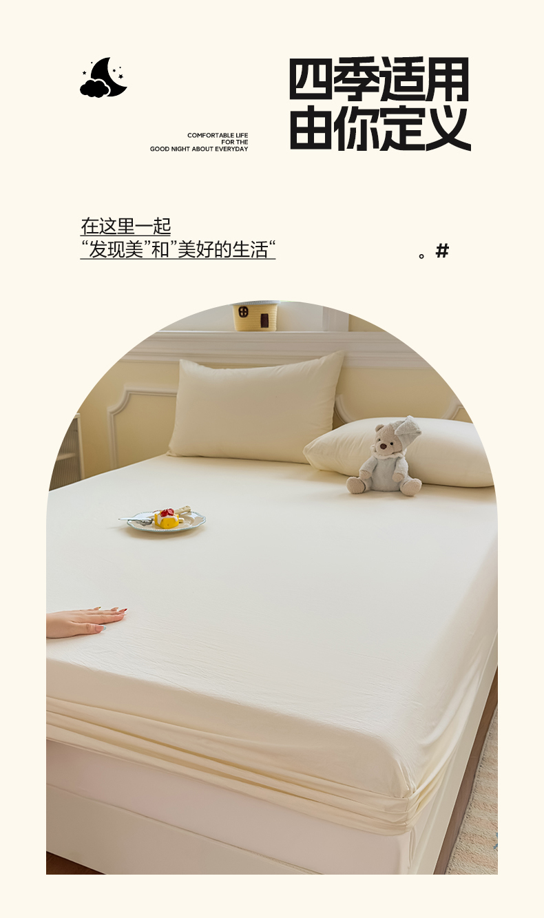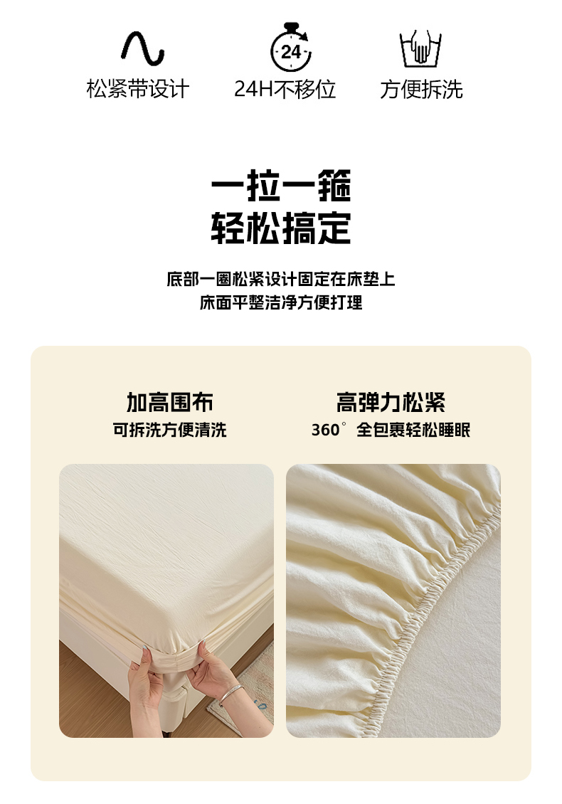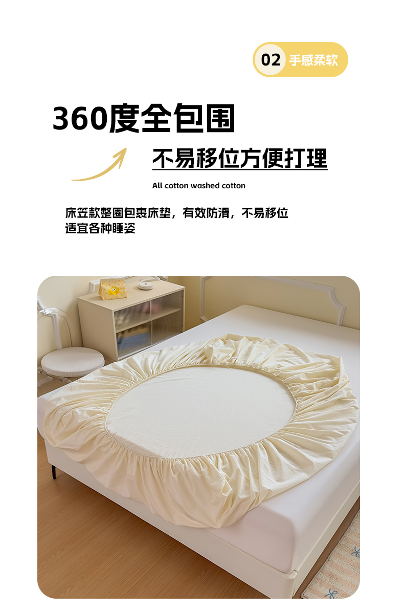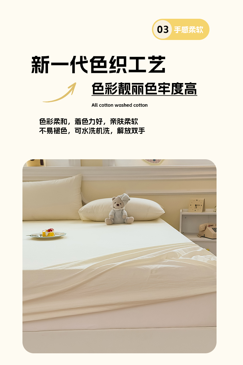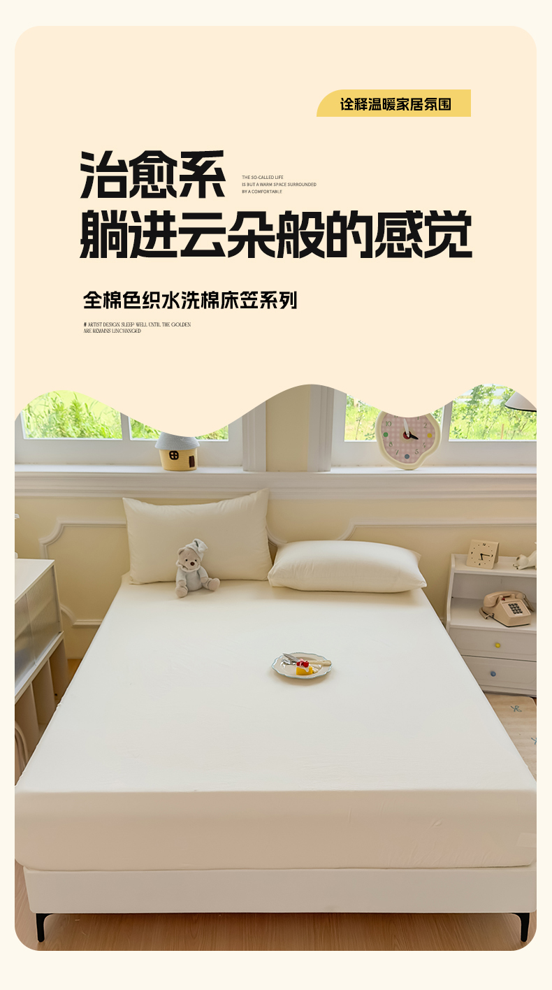 • 91家纺网 家纺一手货源 找家纺 菡宝 2025新款全棉纯棉色织水洗棉单单床笠 米白青年