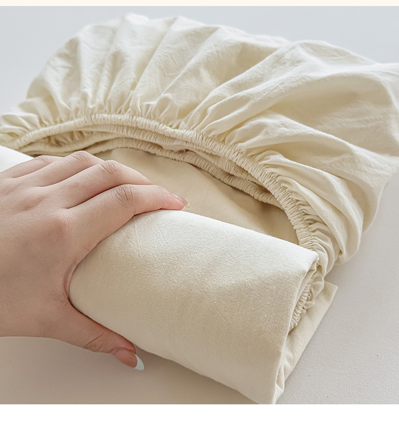菡宝 2025新款全棉纯棉色织水洗棉单单床笠 米白青年
