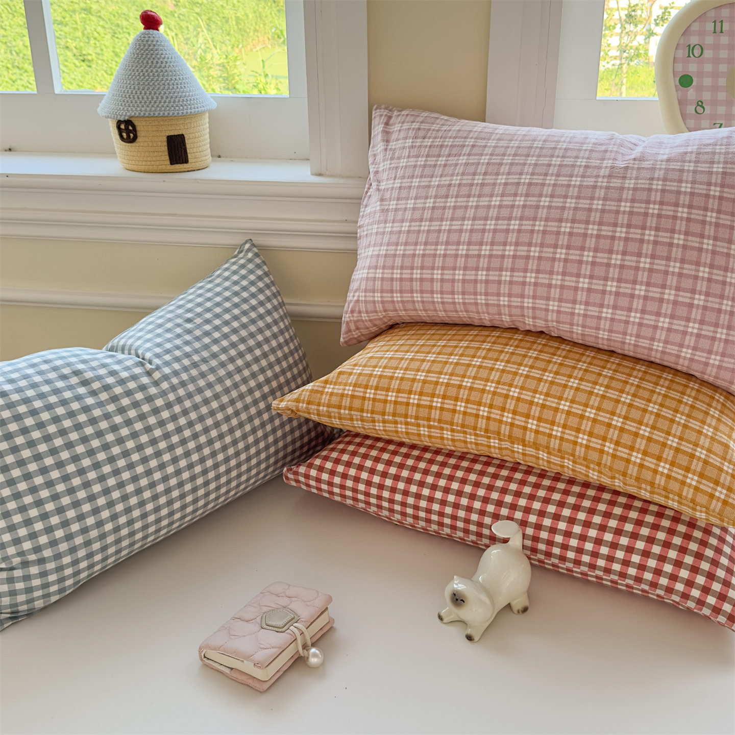 菡宝 2025新款全棉纯棉色织水洗棉单品系列单枕套枕套单品 绿小格