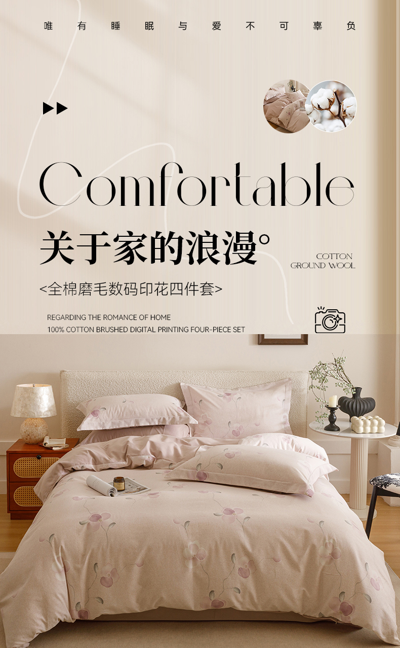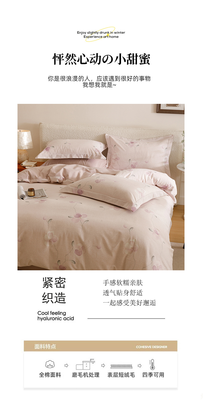 当前位置: 91家纺网 > 商品网购 > 床品套件 > 四件套 > 全棉普通四件套 > 爱思佳 2025新款加厚全棉纯棉磨毛数码印花四件套 春暖花开-紫