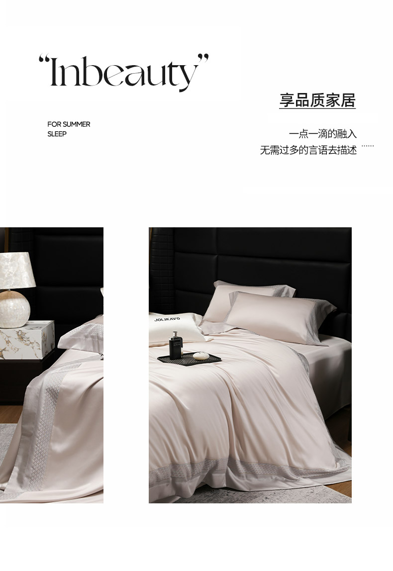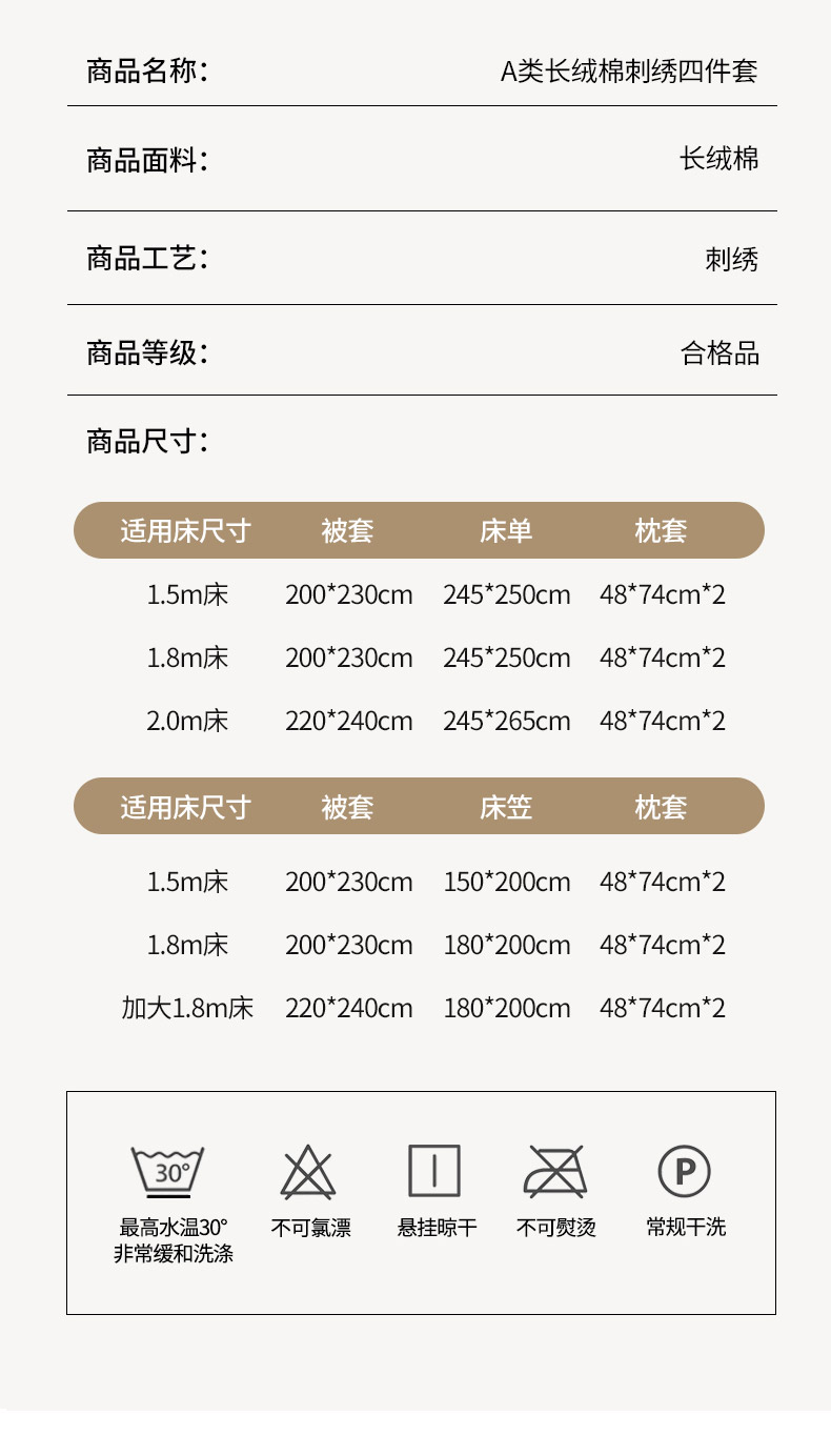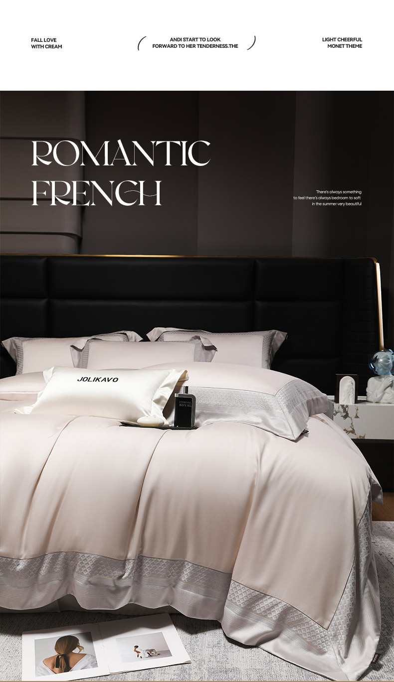 商品名称:2025新款轻奢风A类贡缎长绒棉四件套全棉纯棉重工刺绣拼接被套纯色床单床笠高端床上用品 余音-杏子灰