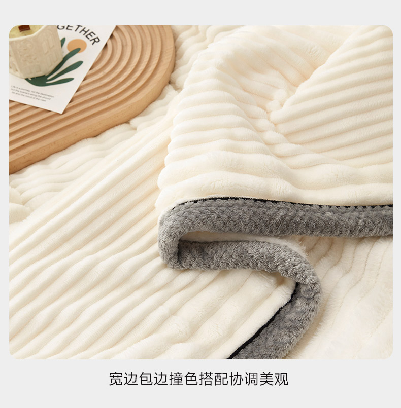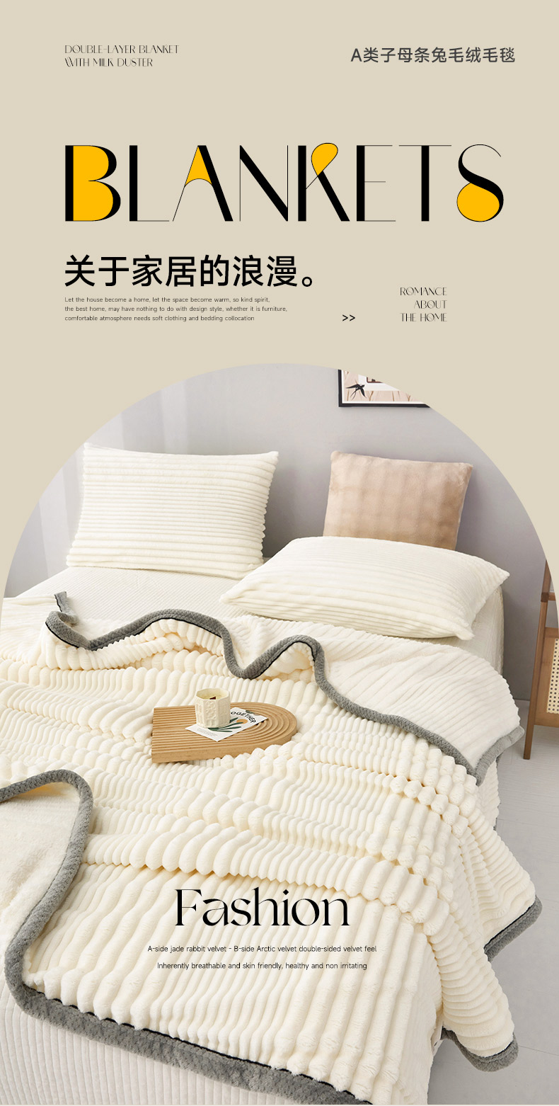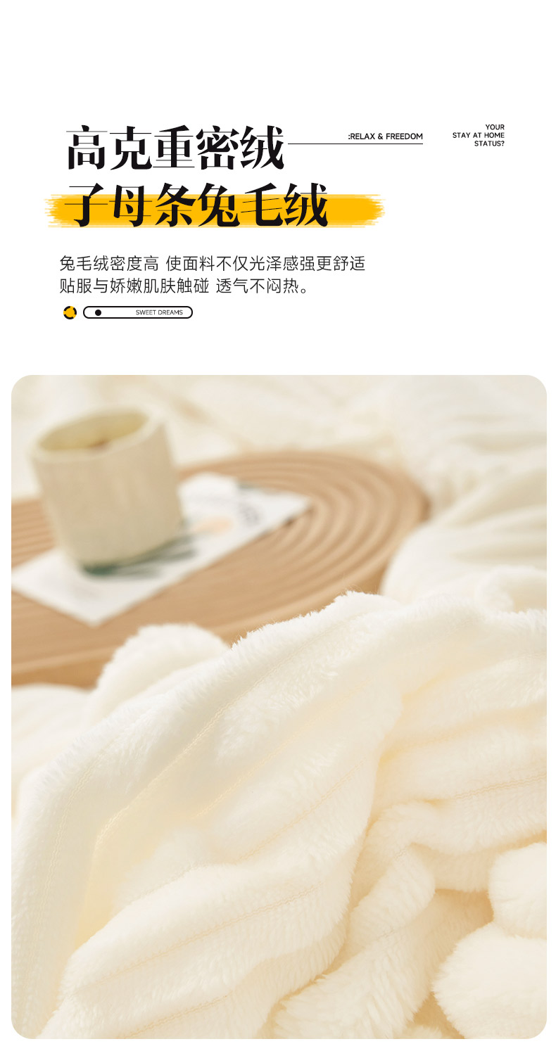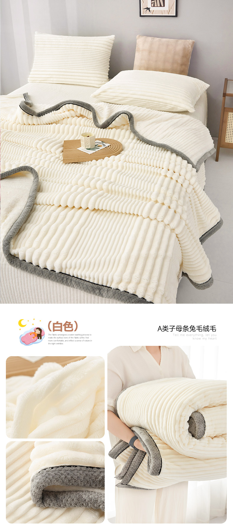 商品名称:肖恩毯业2025新款子母条兔毛绒毛毯盖毯休闲毯绒毯毯子跨境专供可打卷外贸出口可定制尺寸 子母-白色