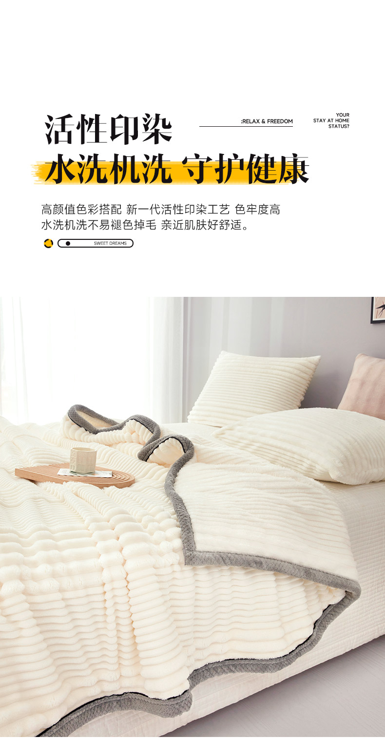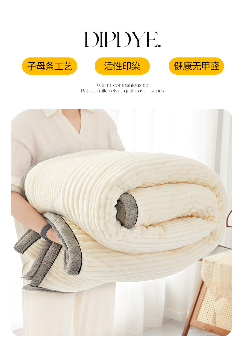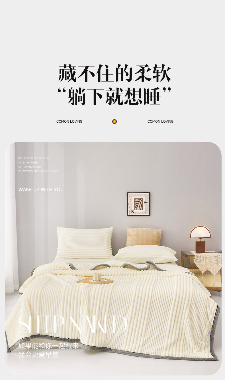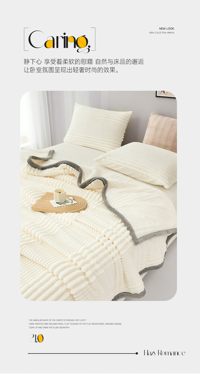 商品名称:肖恩毯业2025新款子母条兔毛绒毛毯盖毯休闲毯绒毯毯子跨境专供可打卷外贸出口可定制尺寸 子母-白色
