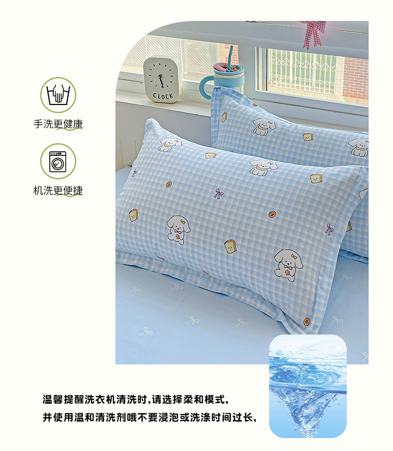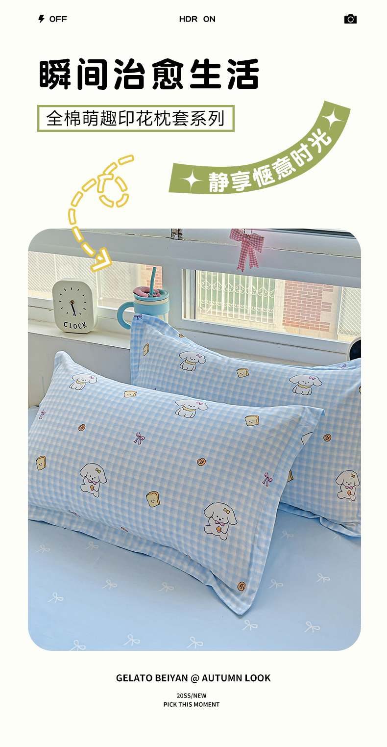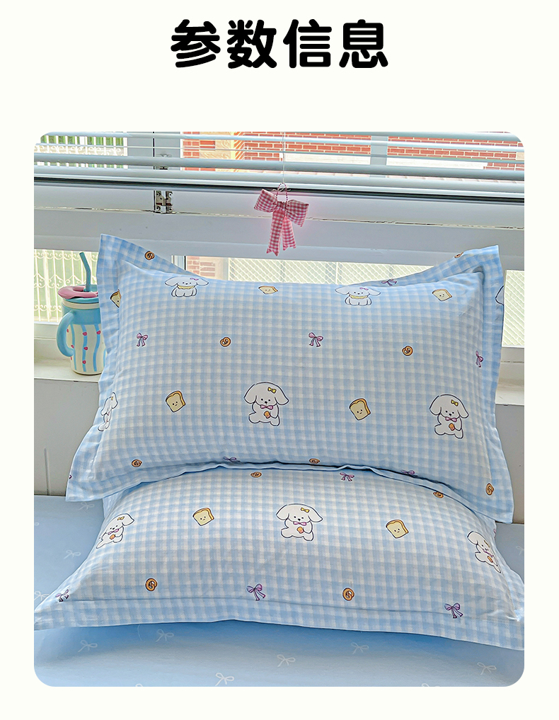 商品名称:恩泽家纺 2025新款加厚全棉纯棉印花系列枕套单件-单枕套 面包小狗