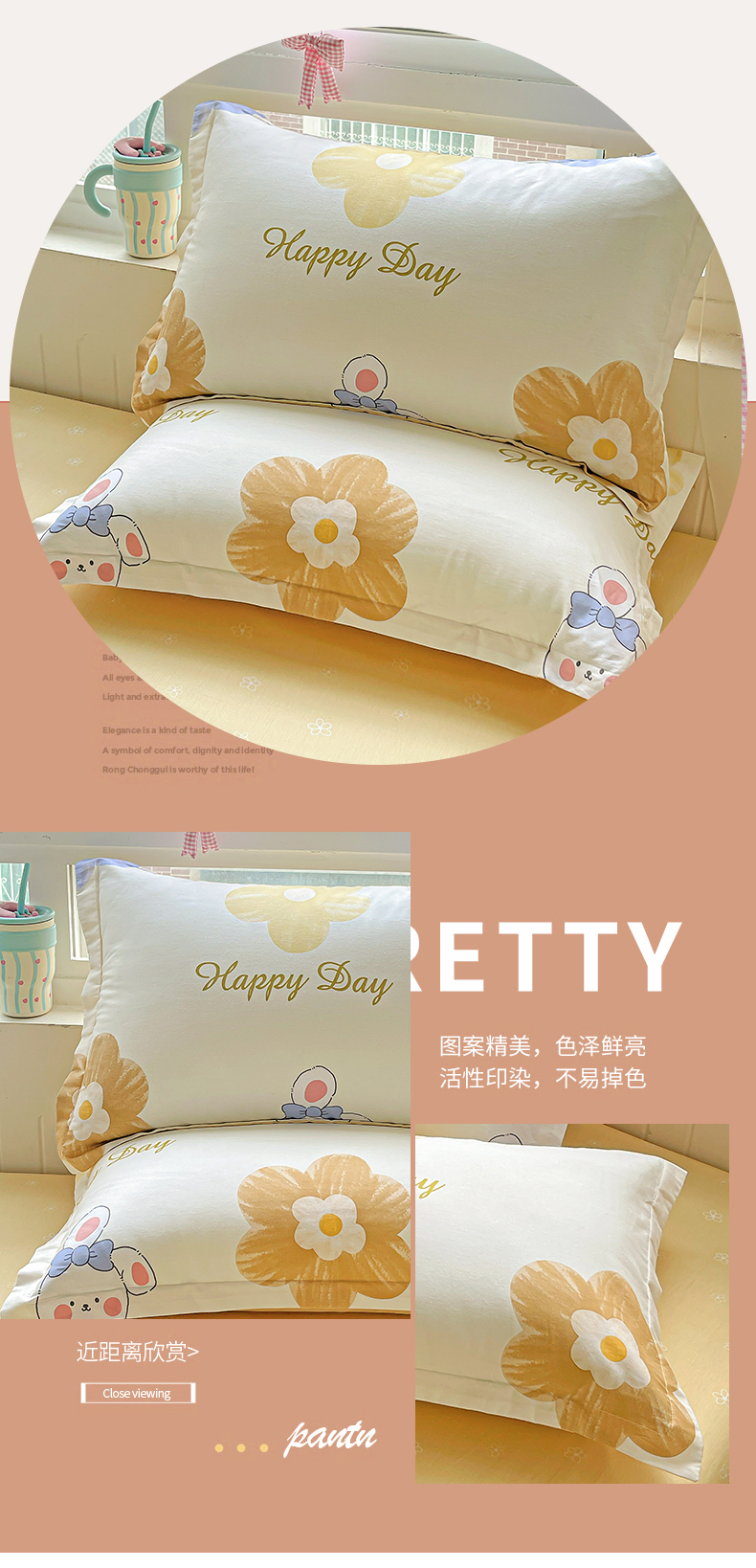 恩泽家纺 2025新款加厚全棉纯棉印花系列枕套单件-单枕套 小兔花