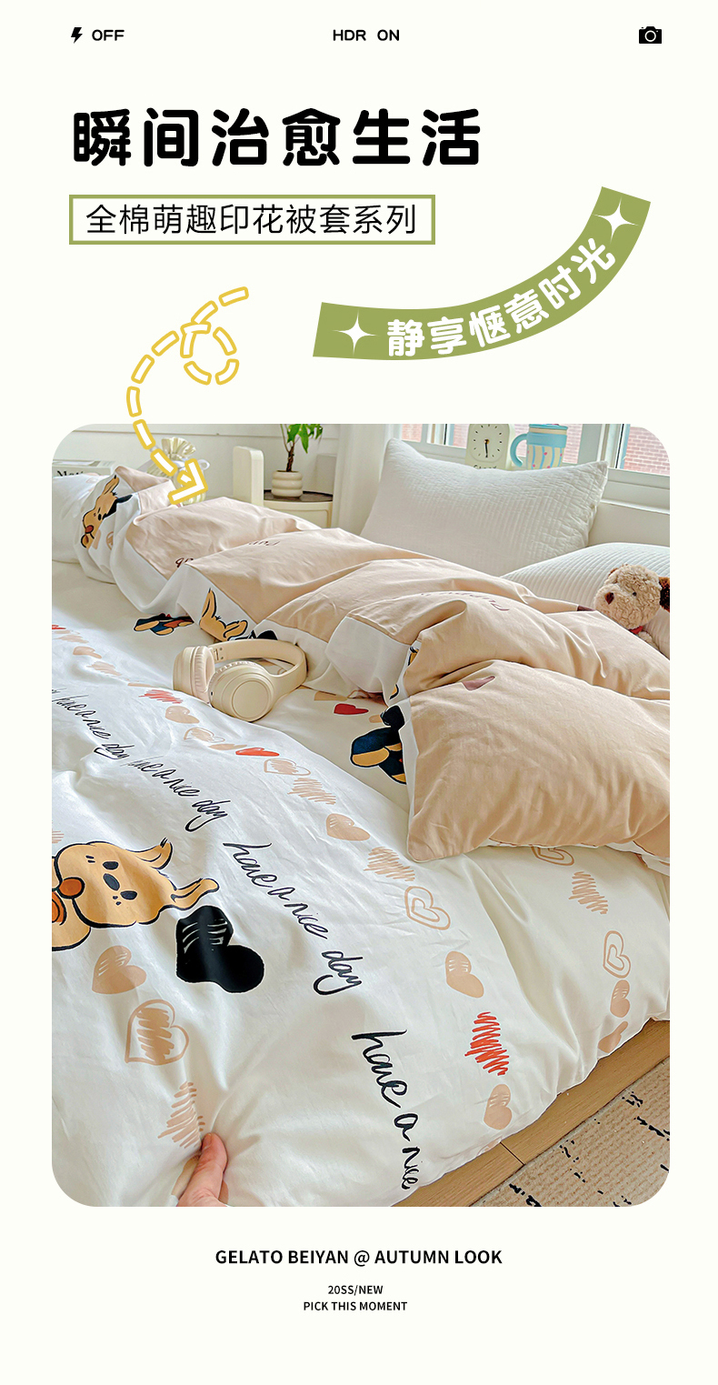 商品名称:恩泽家纺 2025新款加厚全棉纯棉印花系列被套单件-单被套 元气狗狗