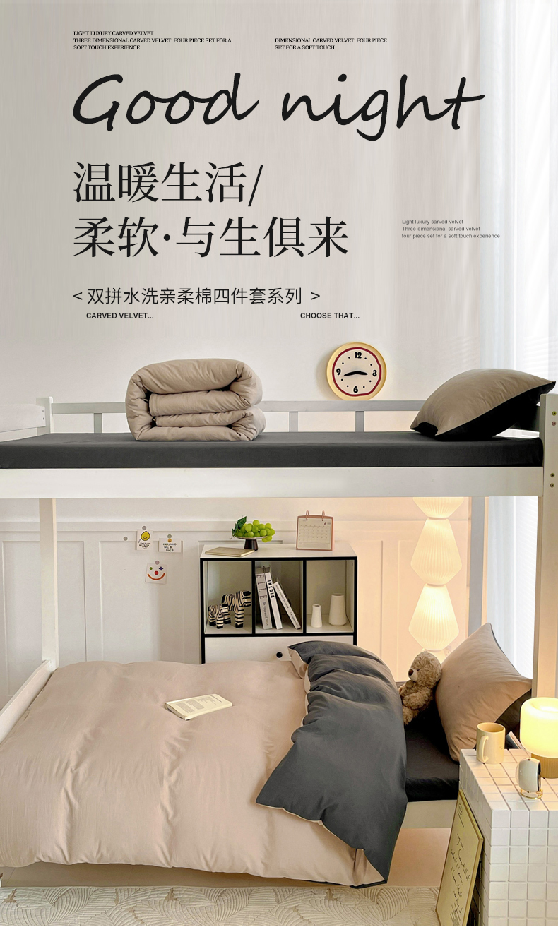 当前位置: 91家纺网 > 商品网购 > 床品套件 > 三件套 > 纽缦家纺 2025新款纯色双拼水洗亲柔棉三件套宿舍三件套上下铺三件套 纯色双拼-豆沙浅灰