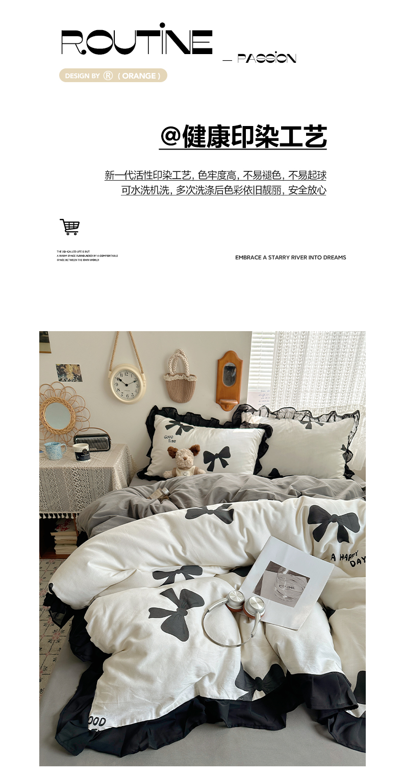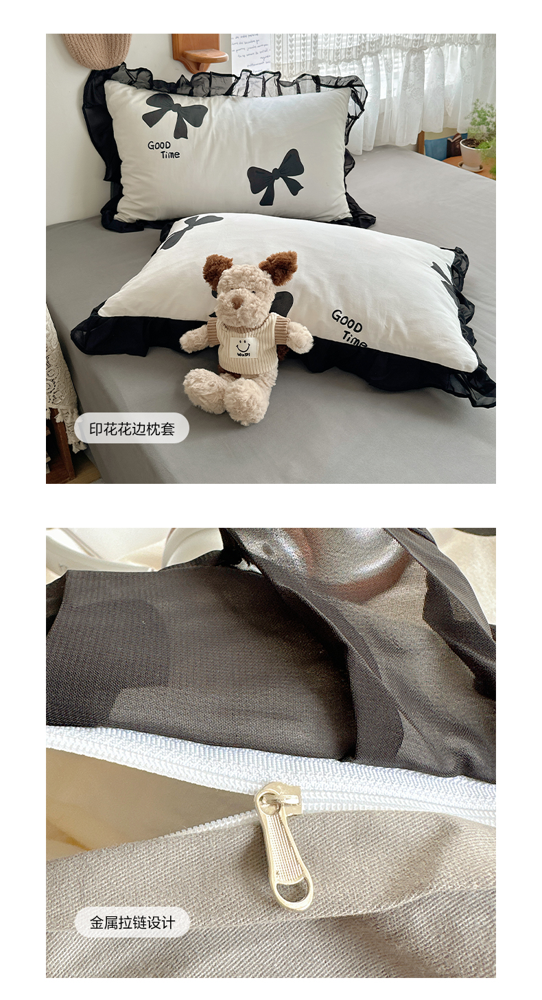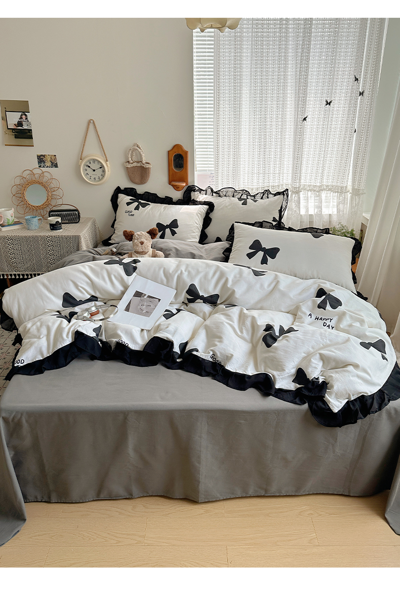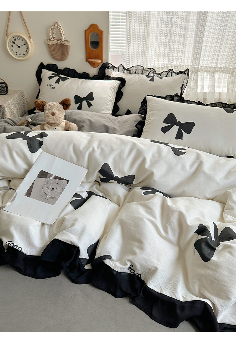 当前位置: 91家纺网 > 商品网购 > 床品套件 > 四件套 > 全棉普通四件套 > 雅居纺家纺 2025新款全棉纯棉赫本风磨毛蕾丝花边四件套-风格一 快乐蝴蝶结