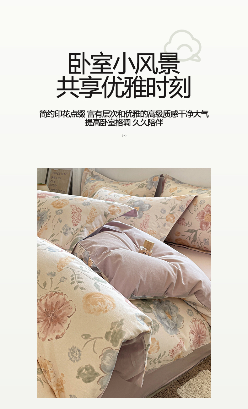 当前位置: 91家纺网 > 商品网购 > 床品套件 > 四件套 > 磨毛活性四件套 > 涵宸家纺 2025新款加厚全棉磨毛印花四件套--罗马系列 场景二 F暖阳里