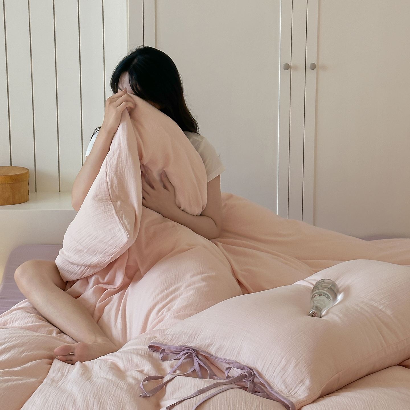 商品名称:小春日和 2025新款纯棉A类婴幼儿母婴纯色双层皱皱纱四件套 海盐芝士