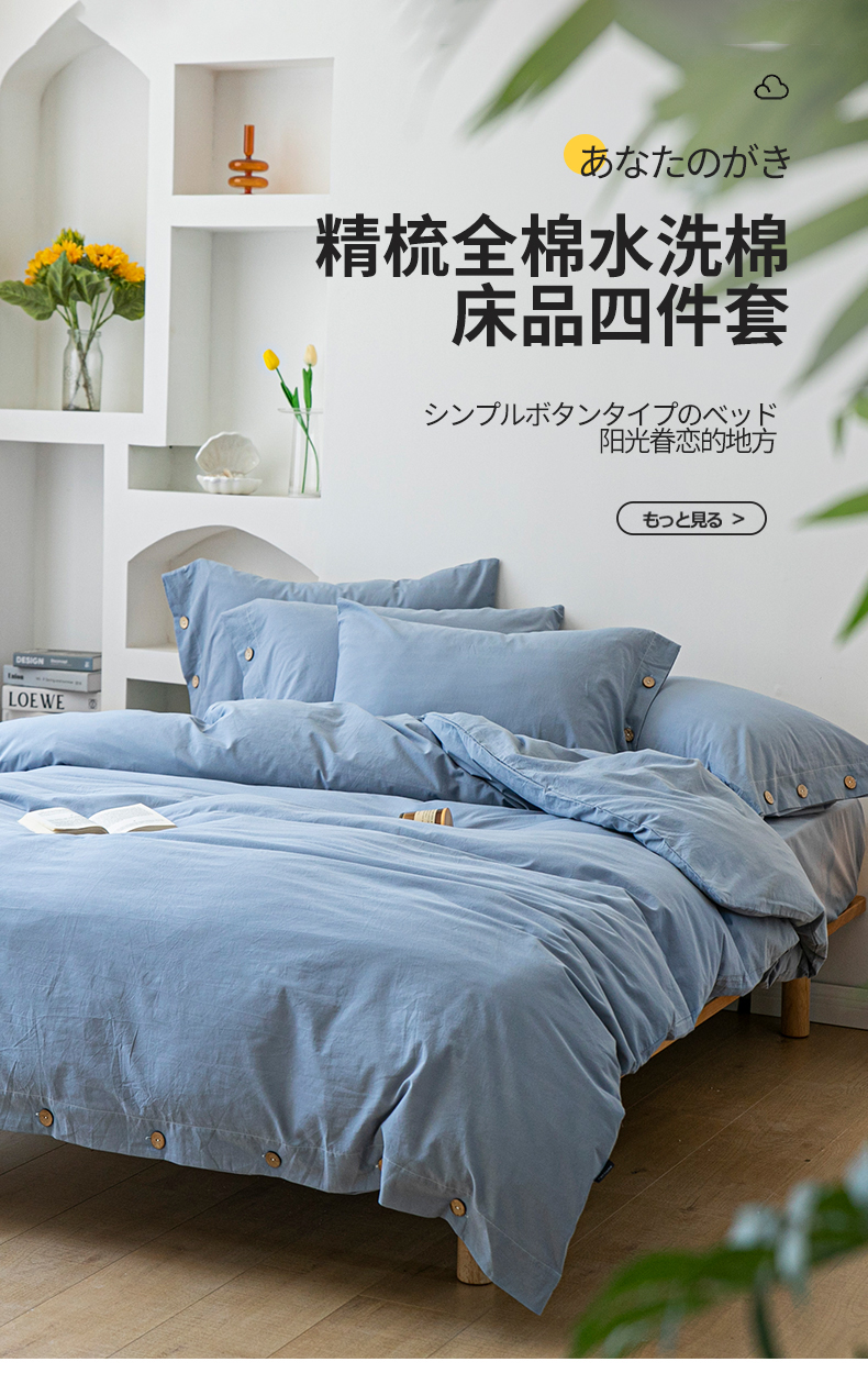 当前位置: 91家纺网 > 商品网购 > 床品套件 > 四件套 > 水洗棉四件套 > 贝尔 PELLHOME 全棉水洗棉纽扣款四件套(春节不打烊)(可抖音代发) 天蓝