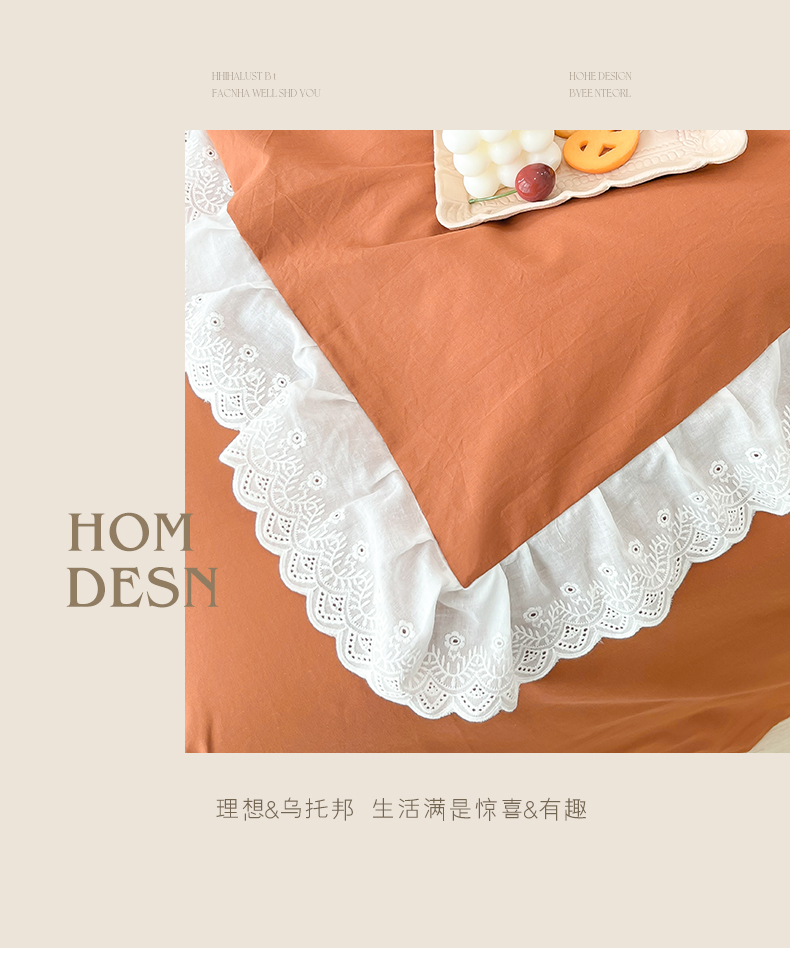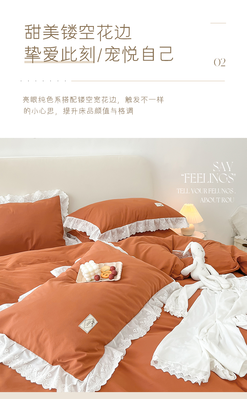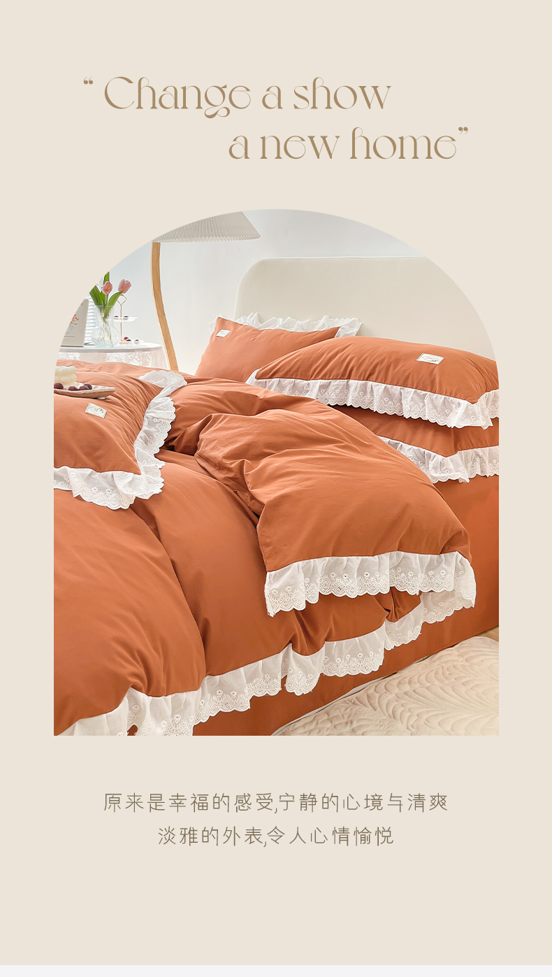 贝尔 PELLHOME 全棉水洗棉宽花边镂空刺绣四件套床单床笠场景一春节不打烊(可抖音代发) 蔓青绿