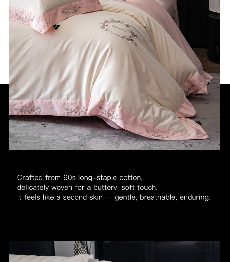当前位置: 91家纺网 > 商品网购 > 床品套件 > 四件套 > 长绒棉四件套 > 卡姿家纺 2025秋冬60支长绒棉全棉纯棉女奢温柔刺绣四件套— 奥莉雅 奥莉雅-奶油白