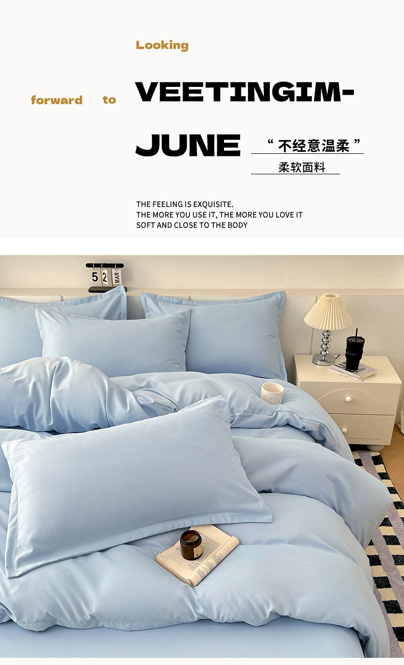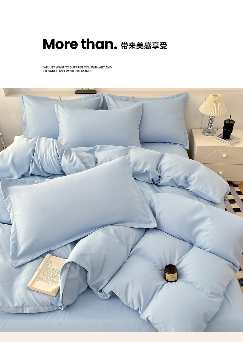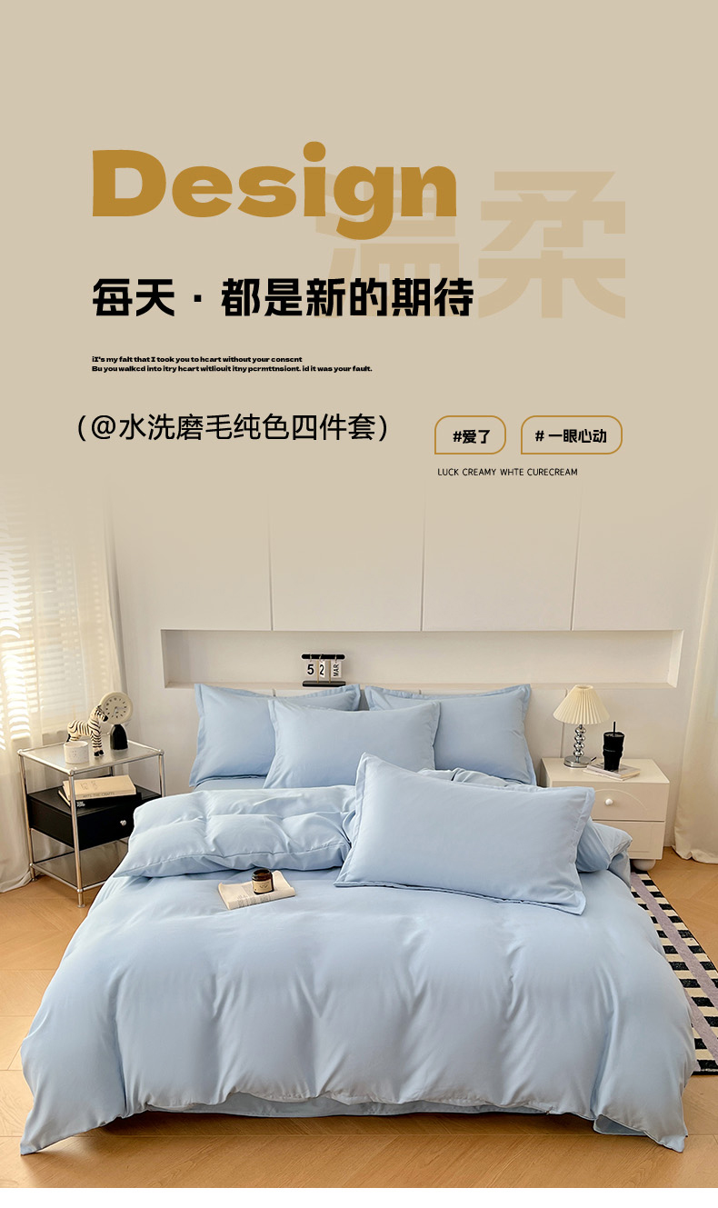 当前位置: 91家纺网 > 商品网购 > 床品套件 > 四件套 > 其它四件套 > 世爵 2025新款热款轻奢简约风高克重纯色140克水洗磨毛四件套 天兰色