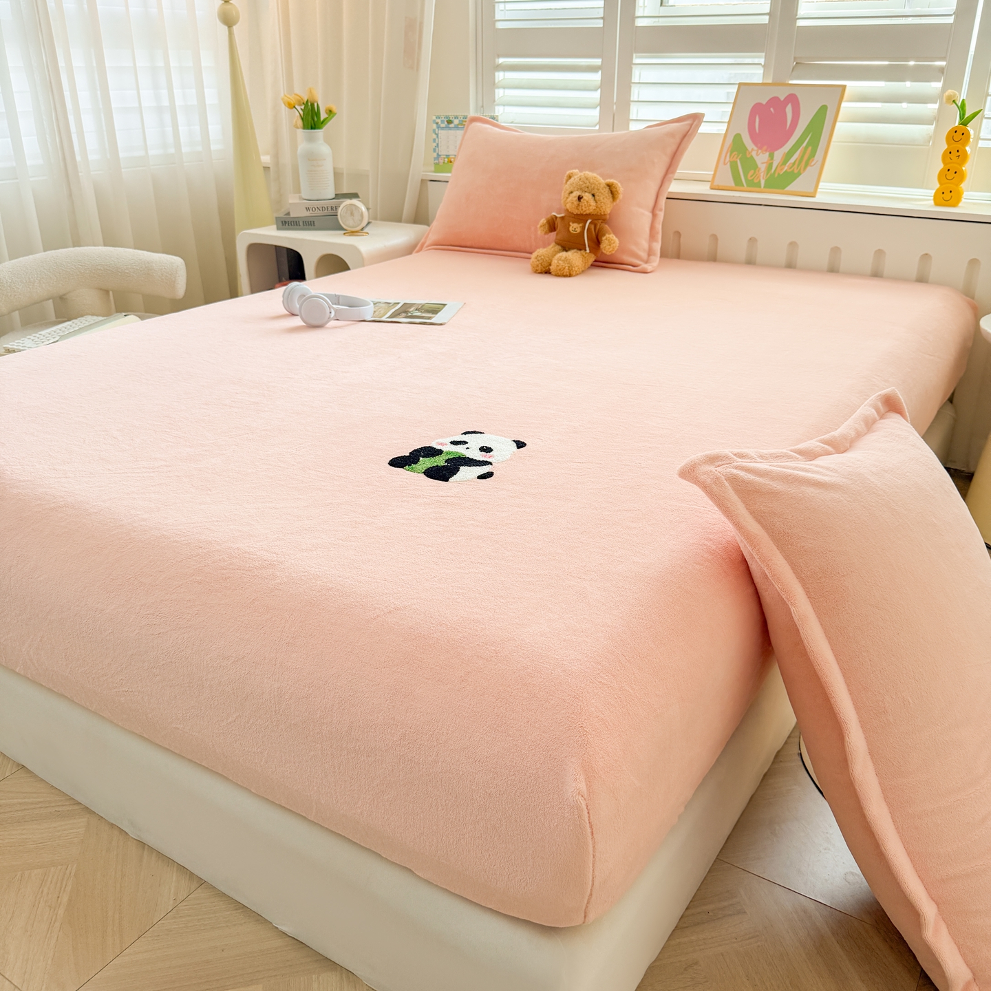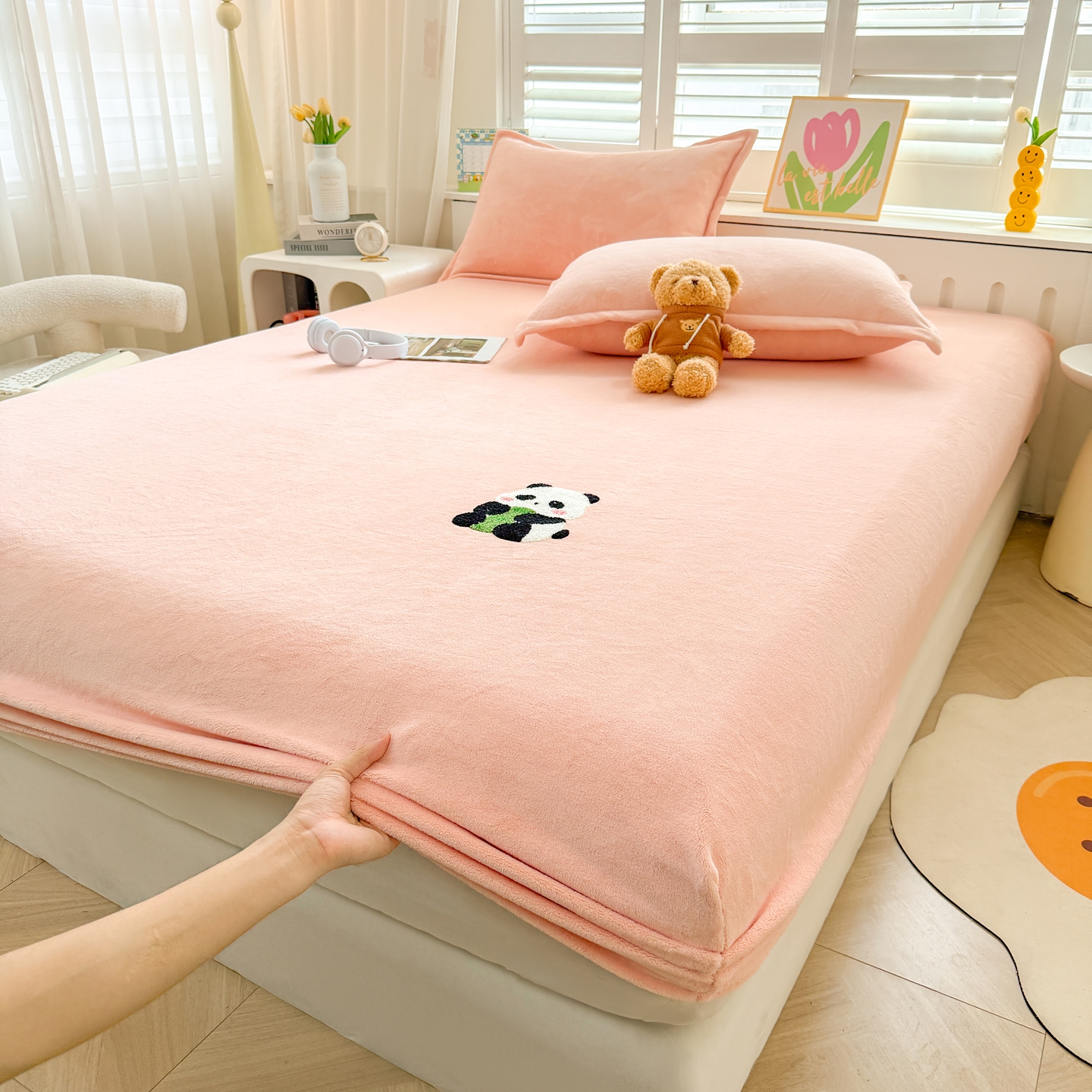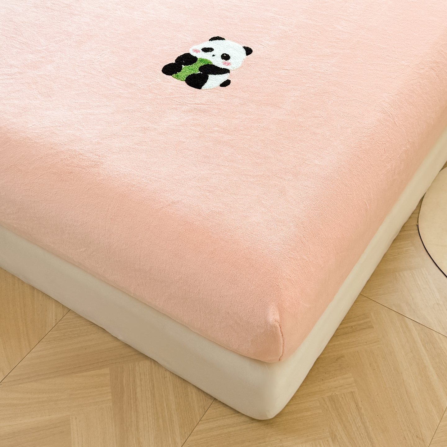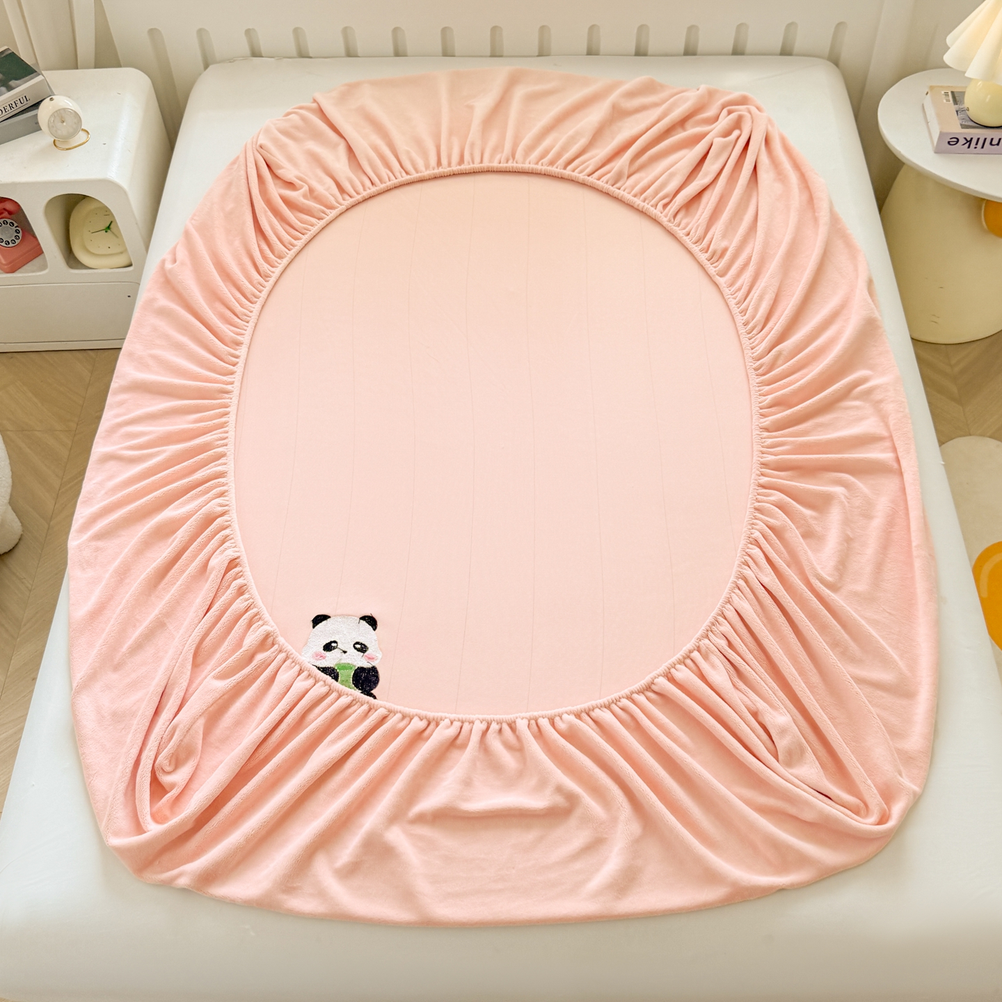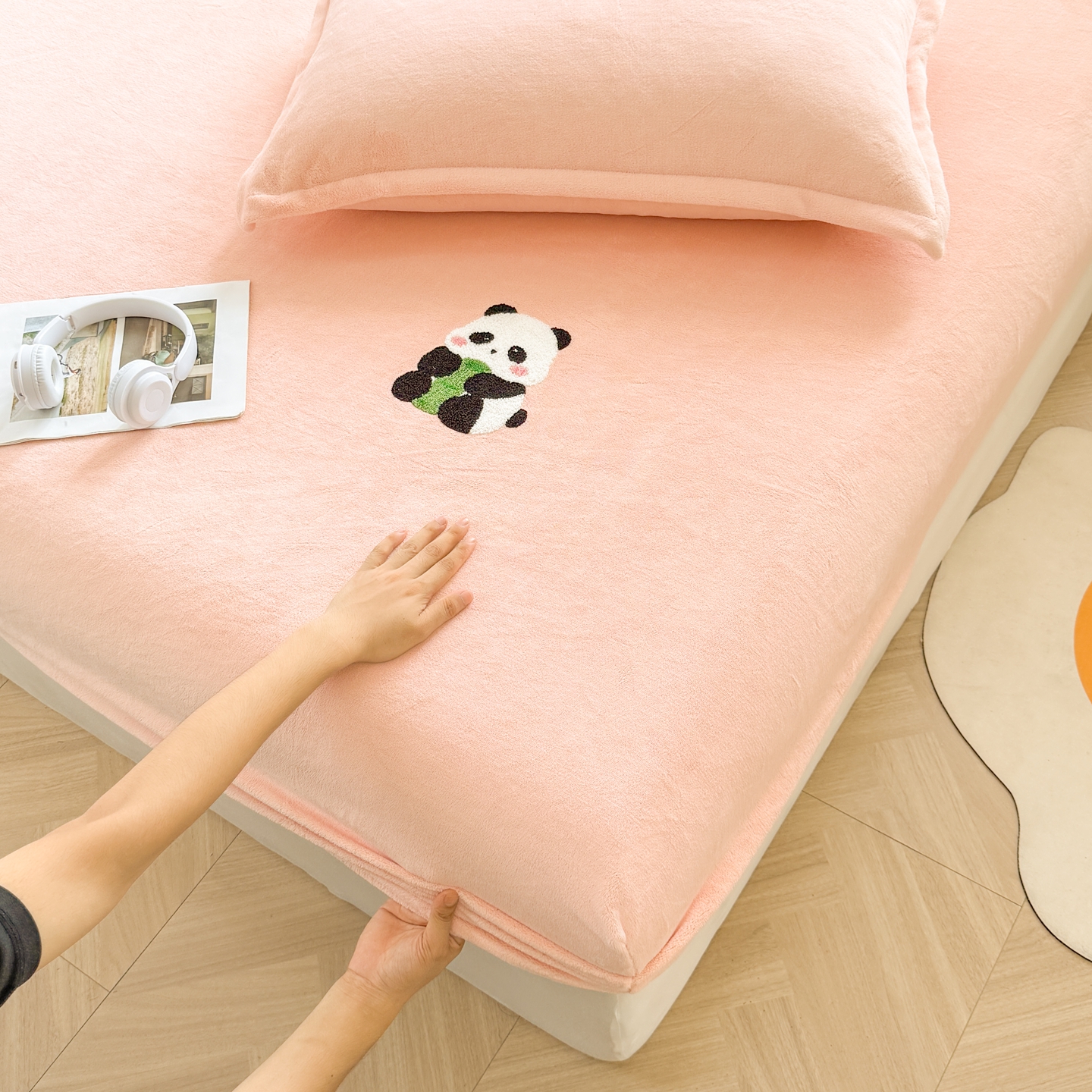 湘之帛 2025新款牛奶绒印花床笠 小熊猫-粉色