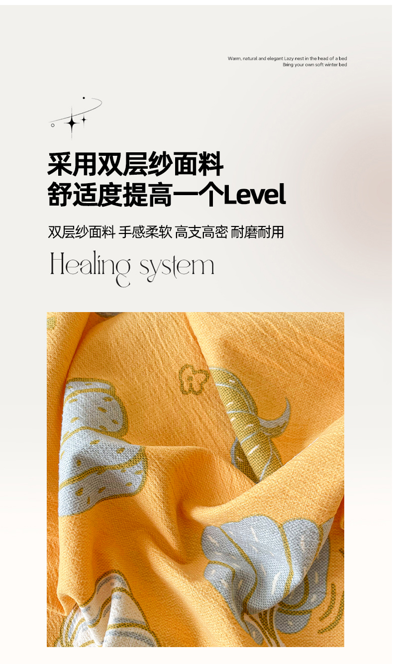 • 91家纺网 家纺一手货源 找家纺 棉乐町家居 2025新款木棉双层纱印花床笠 花清雅香