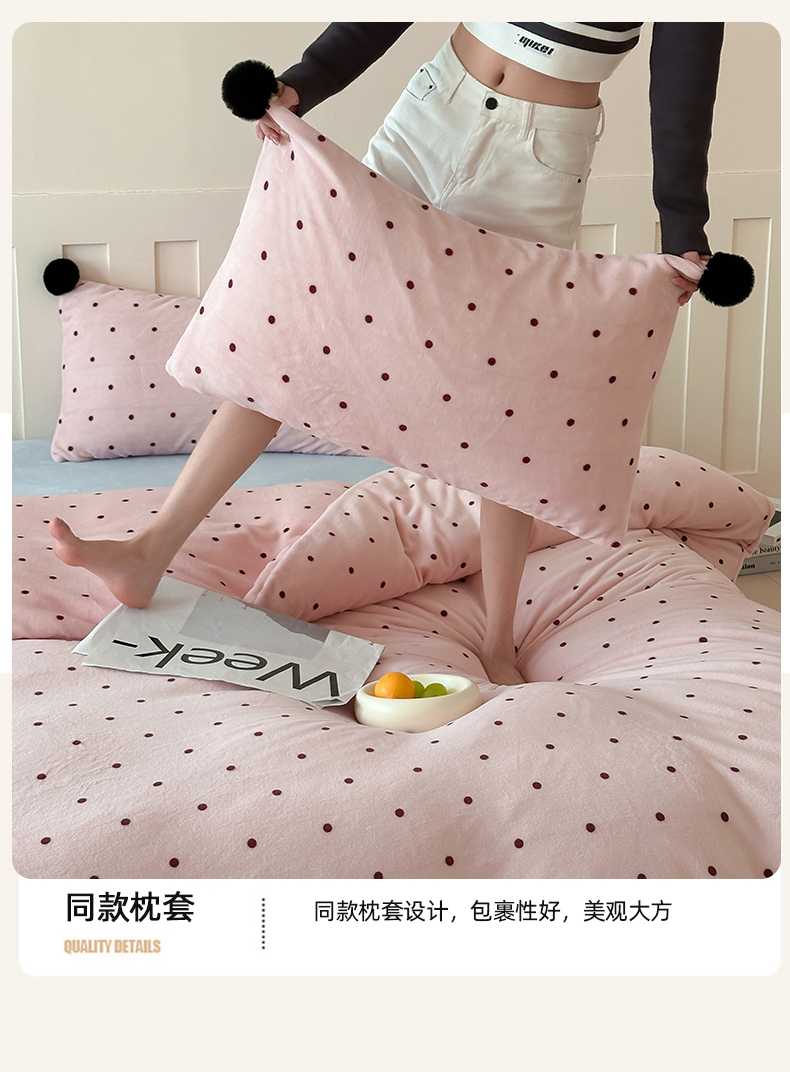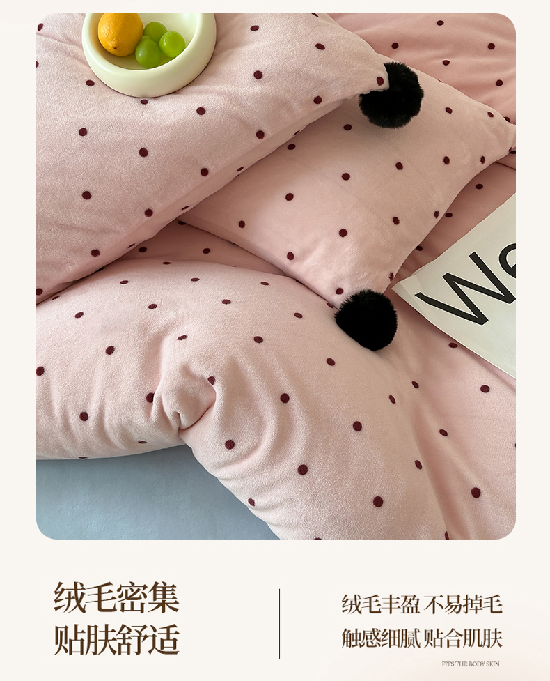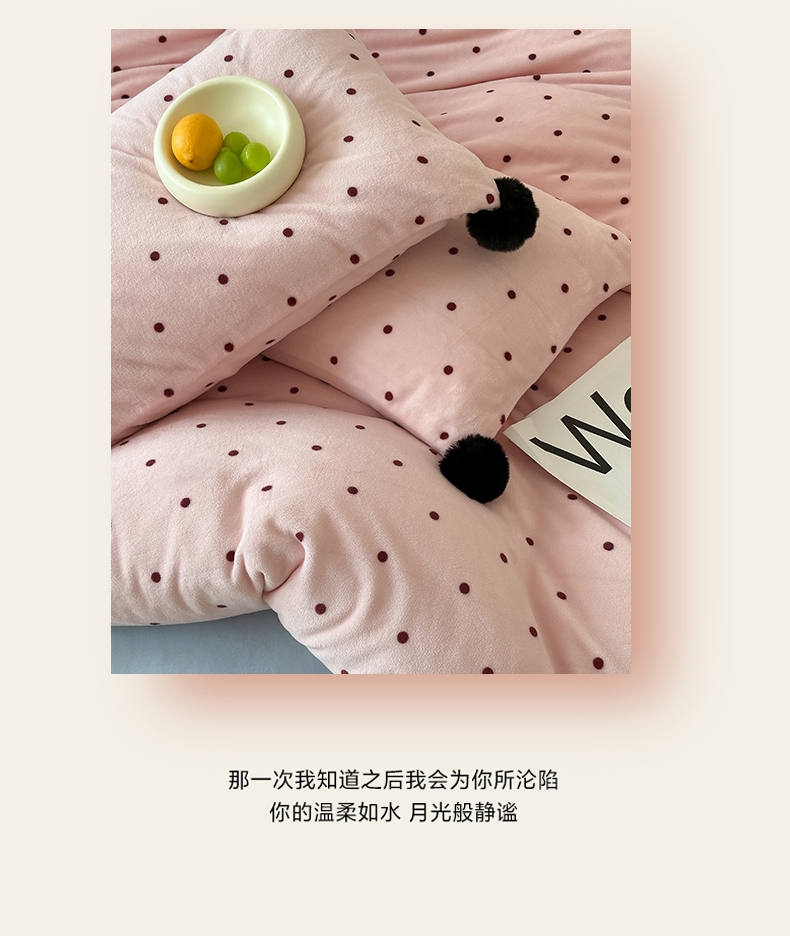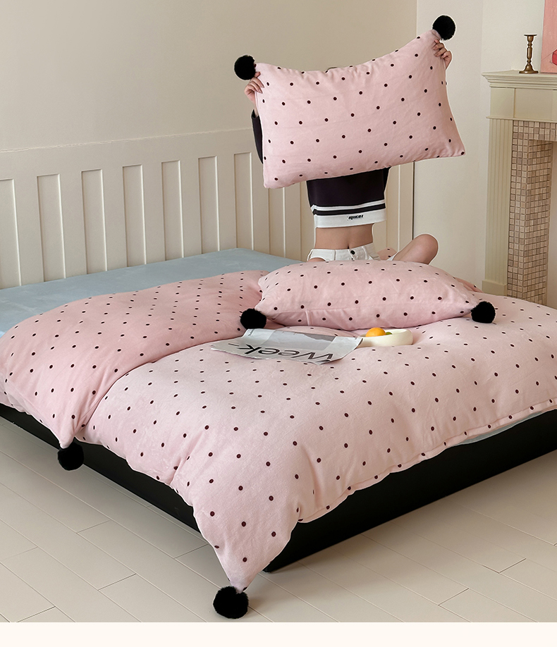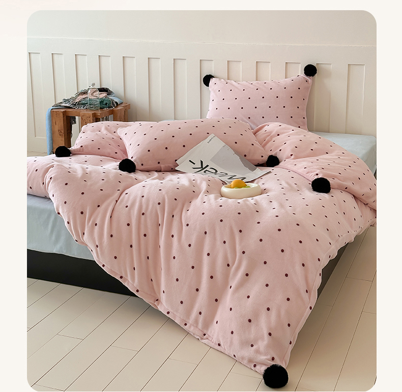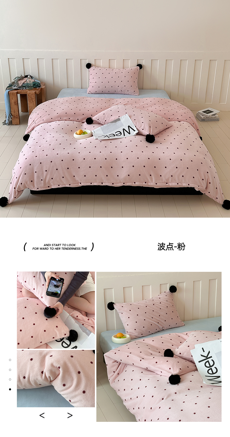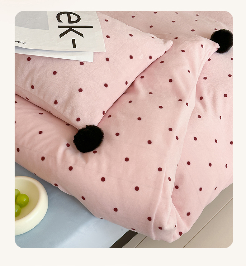 商品名称:玛奇朵 2024秋冬新品波点牛奶绒毛球套件四件套 波点-粉