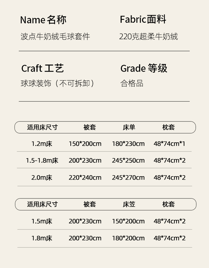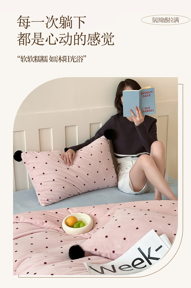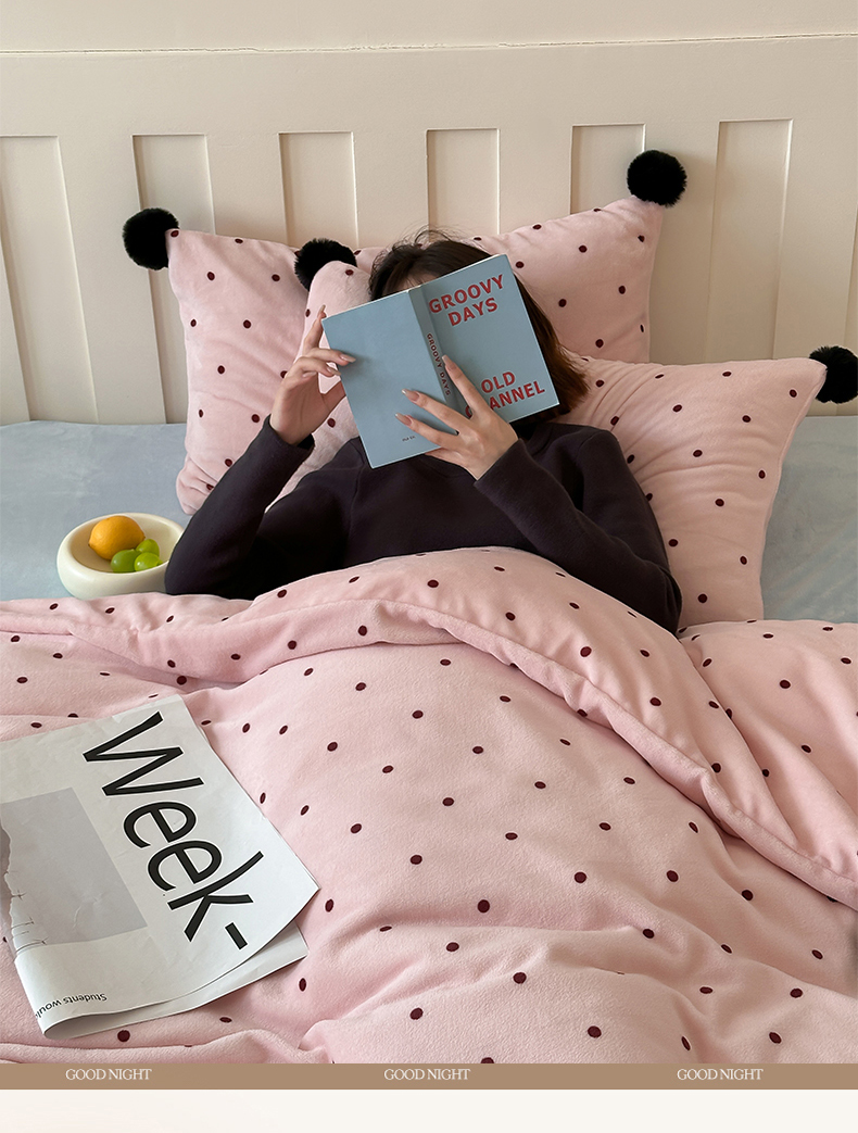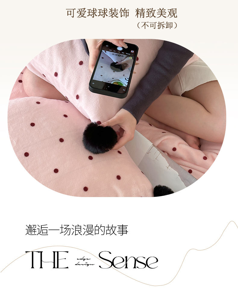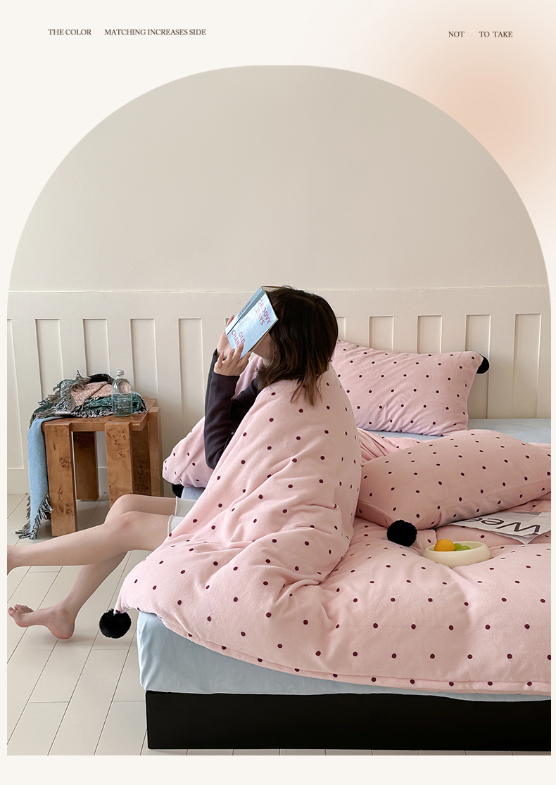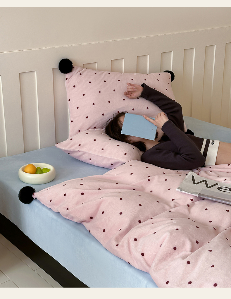 商品名称:玛奇朵 2024秋冬新品波点牛奶绒毛球套件四件套 波点-粉