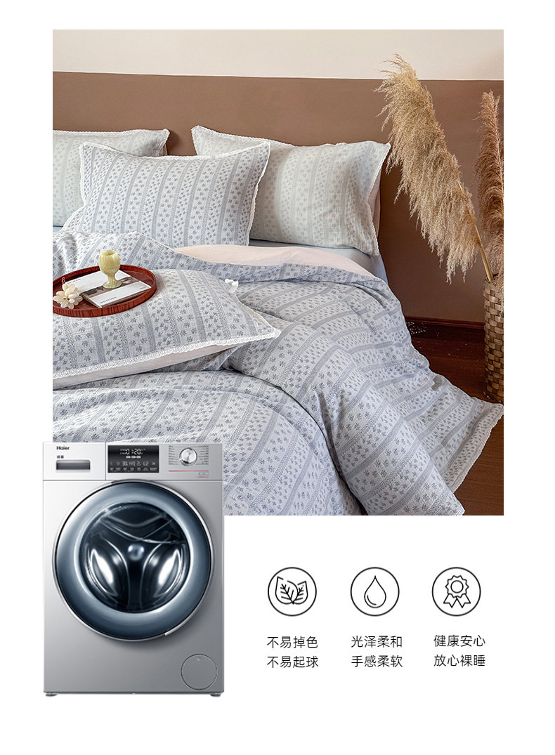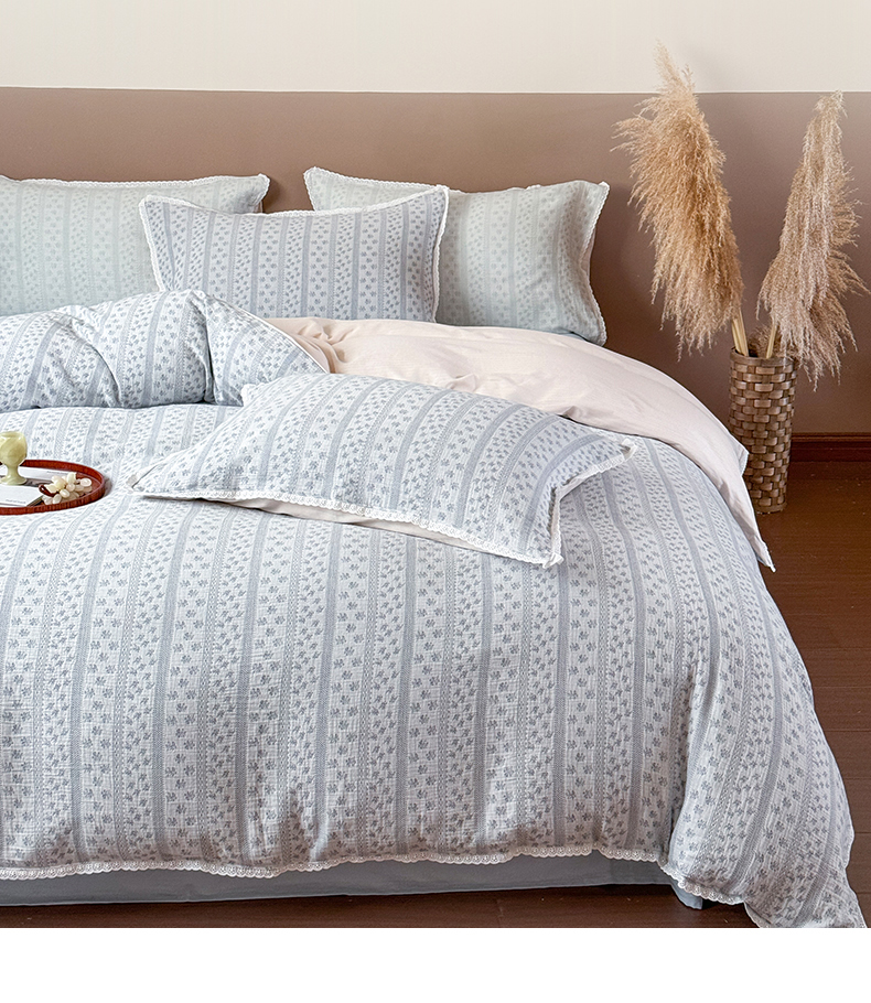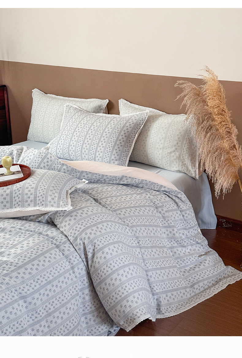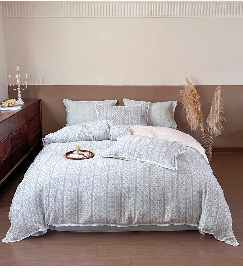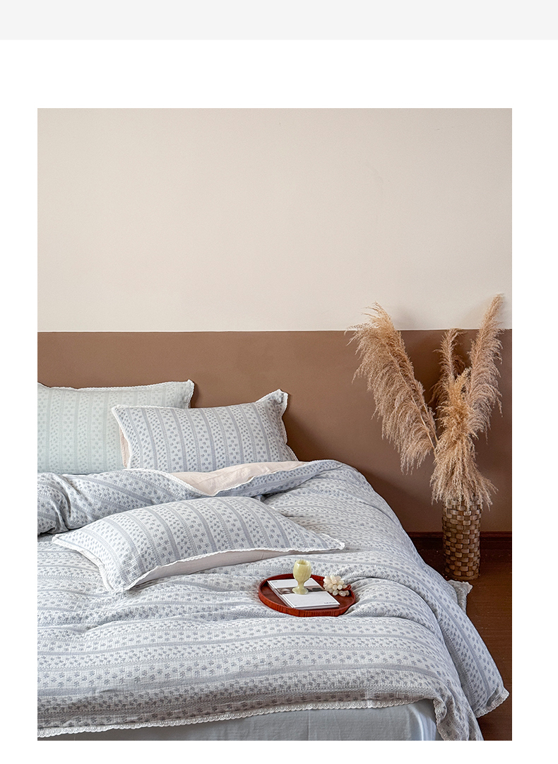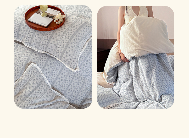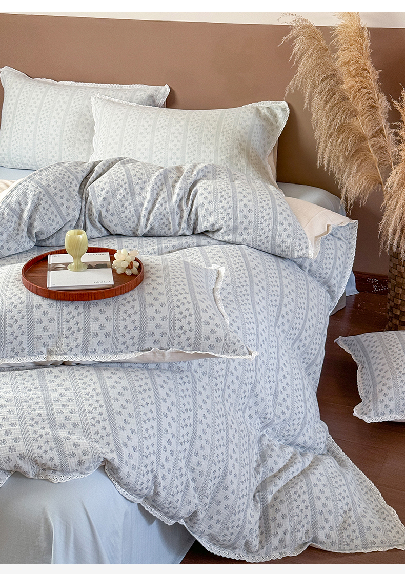 商品名称:玛奇朵 2025新品文艺清新色织双层皱皱纱四件套-春熙里系列 春熙里-蓝